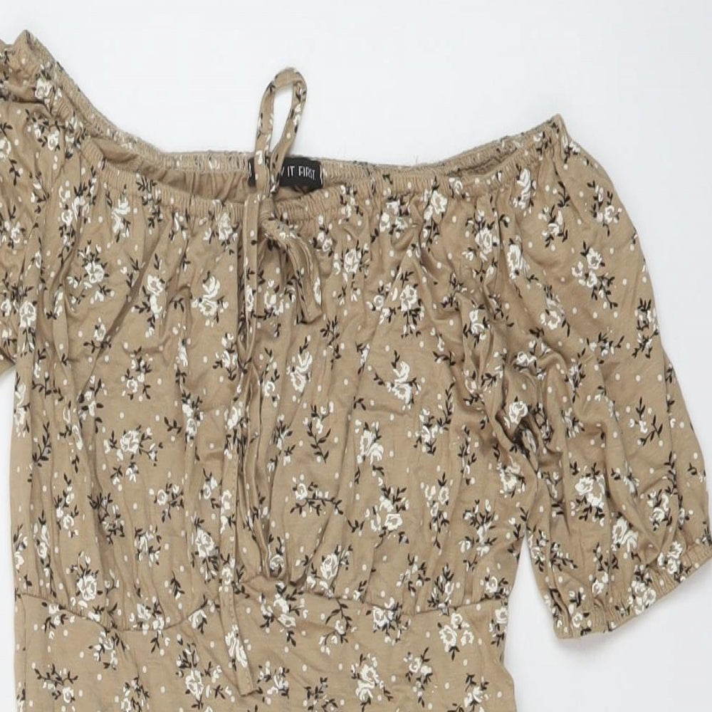 I SAW IT FIRST Womens Beige Geometric Polyester Bodysuit One-Piece Size 8 Snap