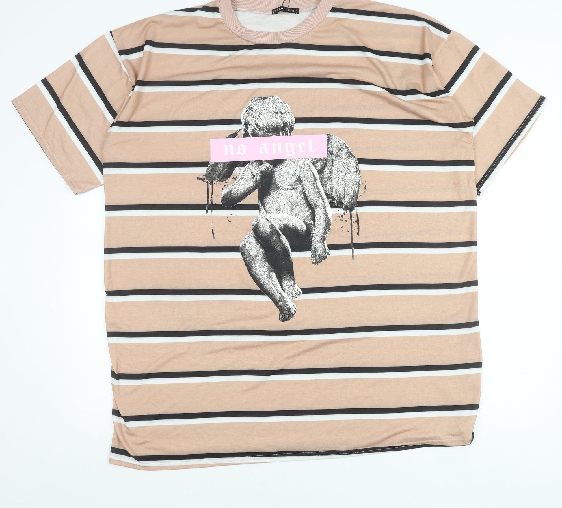 I Saw It First Womens Beige Striped Graphic Angel T-Shirt Size 12