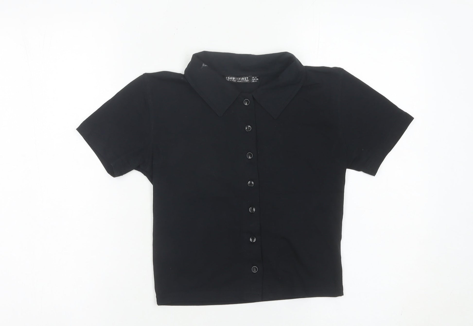 I Saw It First Womens Black Cropped Button-Up Shirt UK 8 Slim Fit