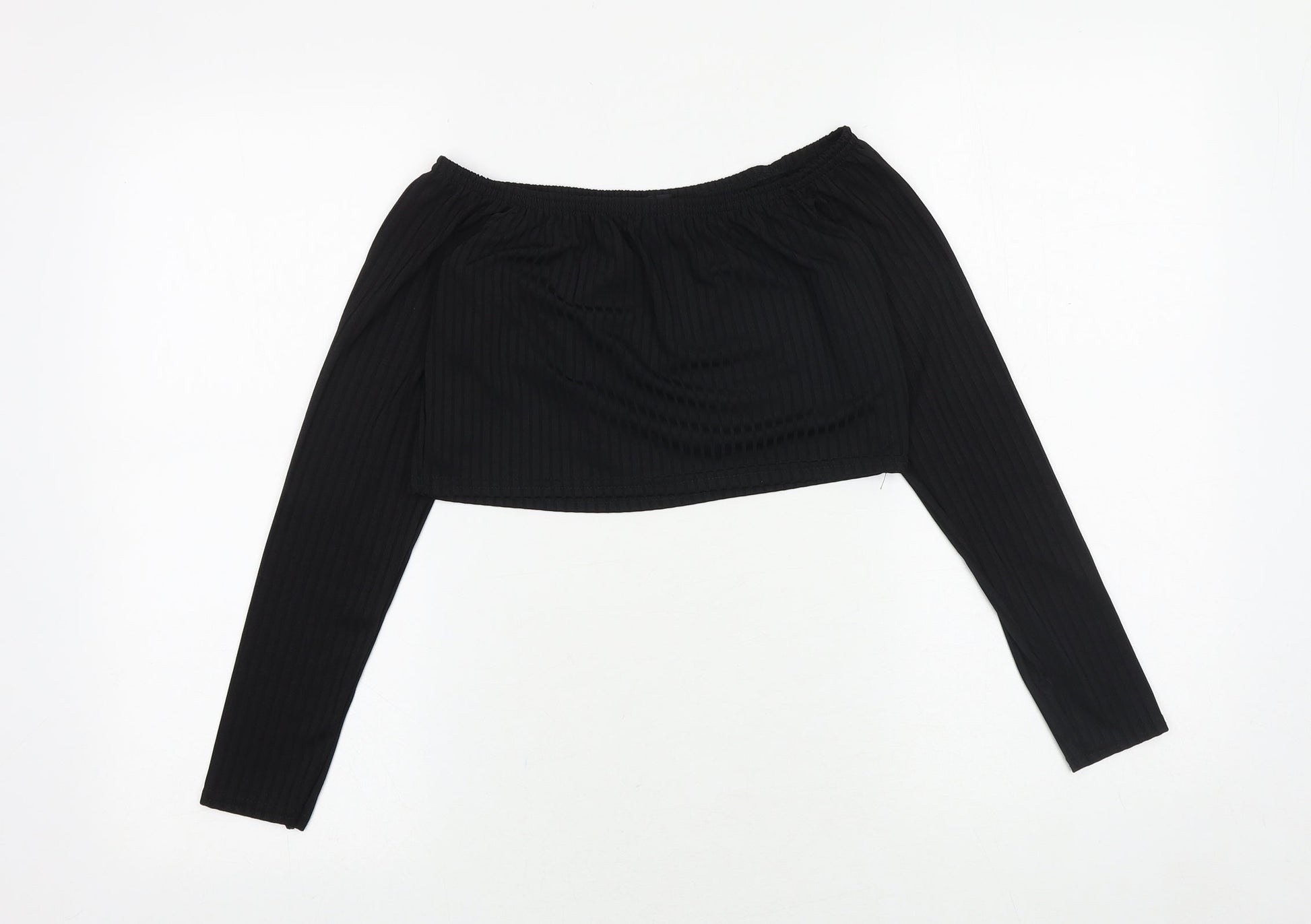 I SAW IT FIRST Womens Black Polyester Cropped Blouse Size S Off the Shoulder