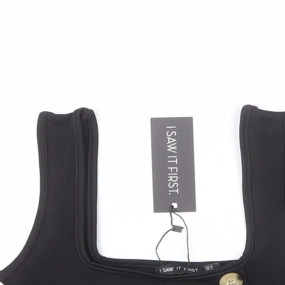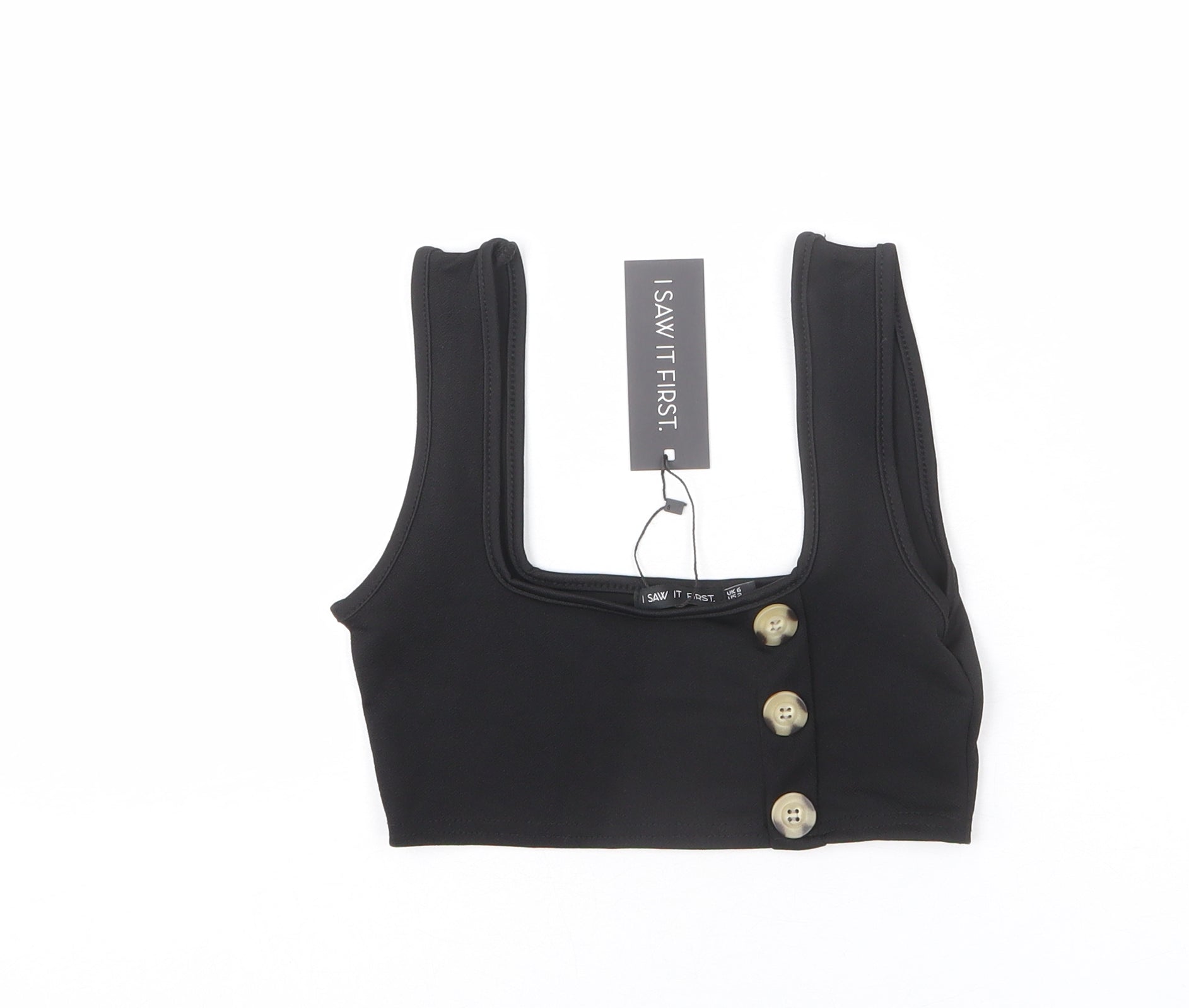 I SAW IT FIRST Womens Black Polyester Cropped Tank Size 6 Square Neck - Button Detail