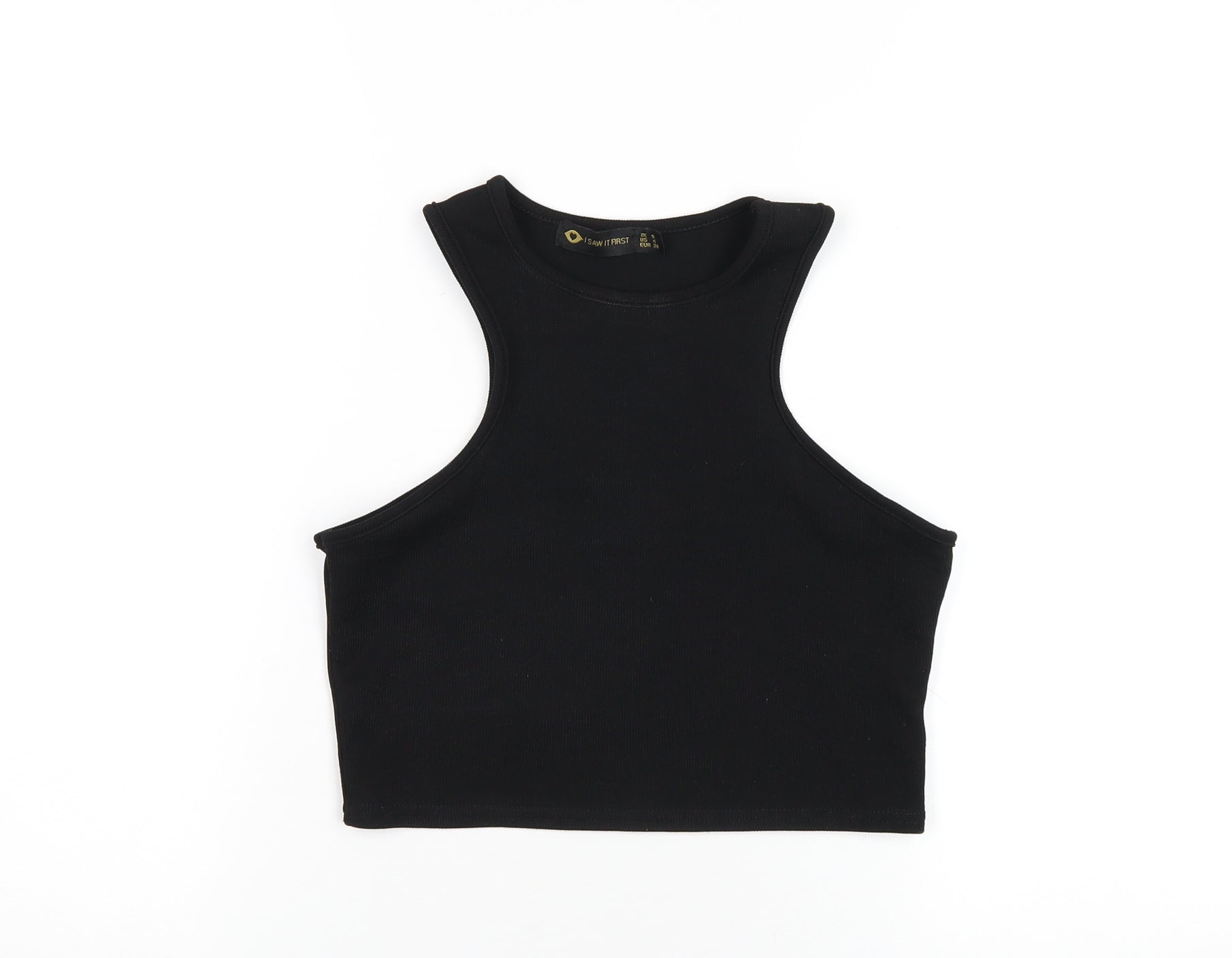 I SAW IT FIRST Womens Black Polyester Cropped Tank Size 8 Round Neck