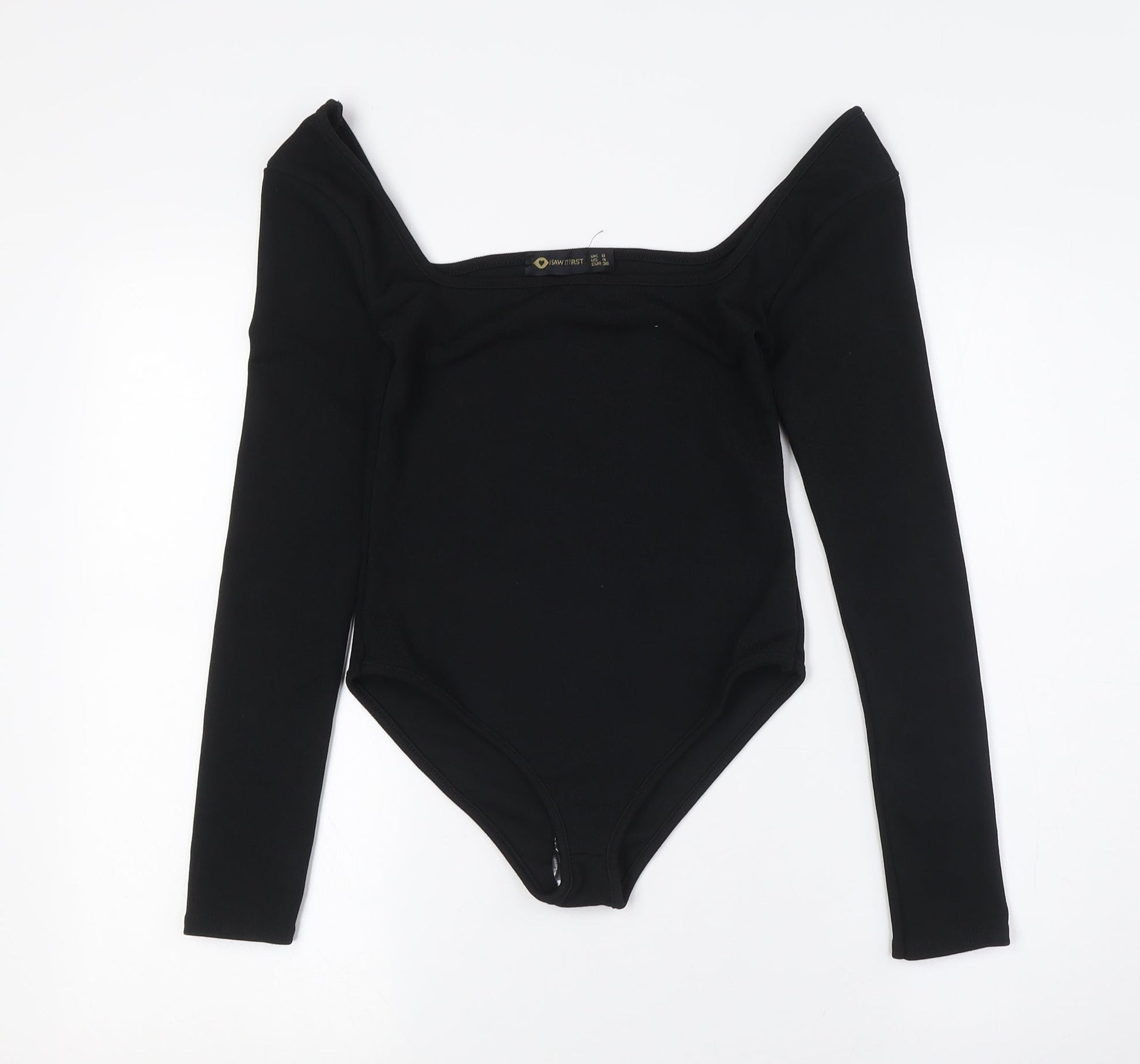 I SAW IT FIRST Womens Black Polyester Leotard One-Piece Size 8 - Ribbed