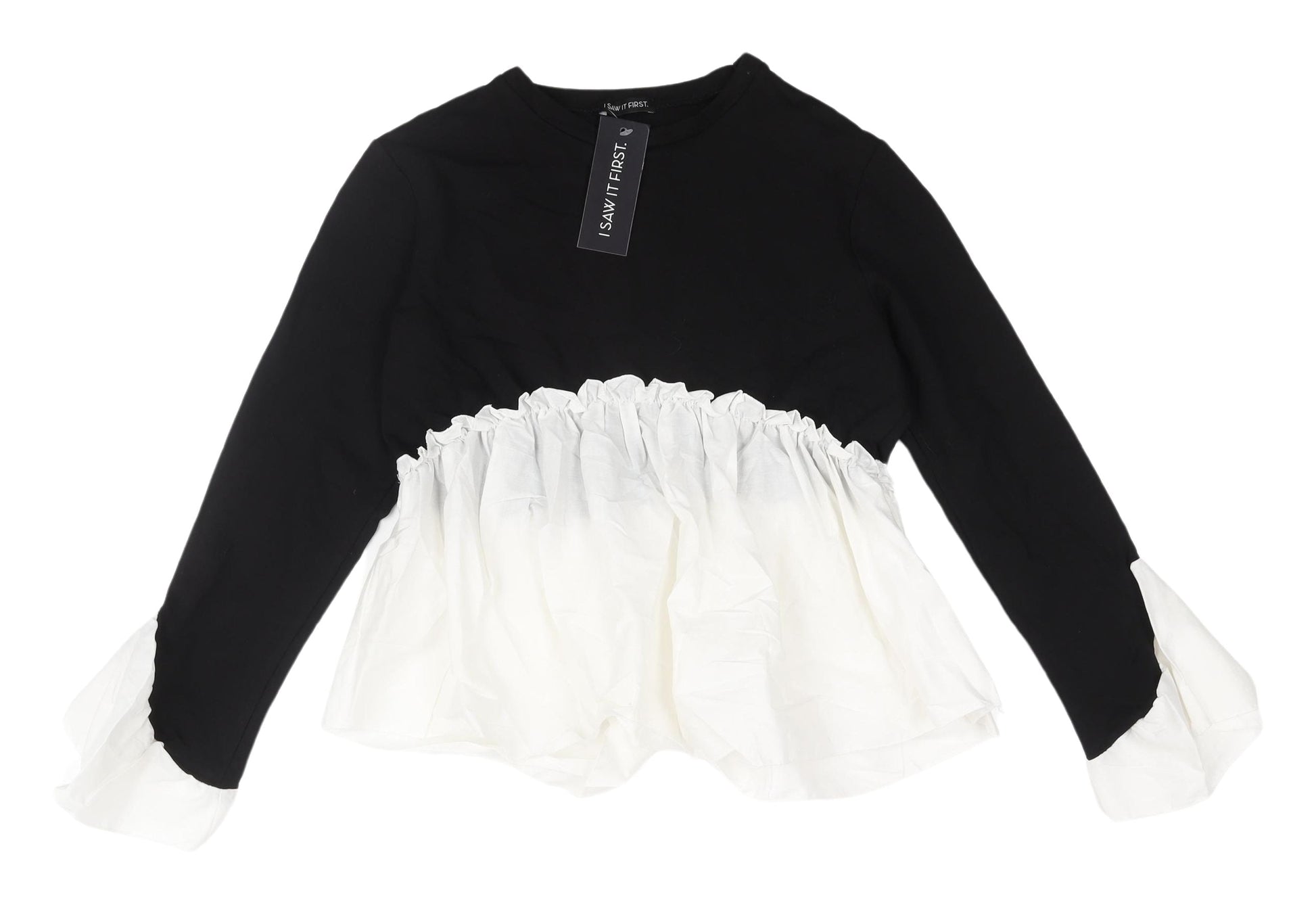 I Saw It First Women's Black White Ruffle Blouse M Casual