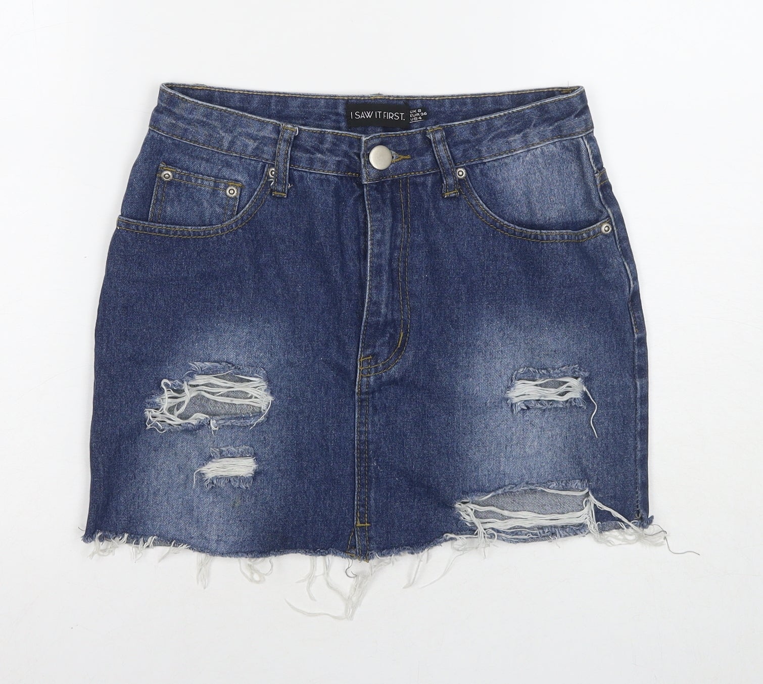 I SAW IT FIRST Womens Blue Cotton A-Line Skirt Size 8 Zip - Distressed