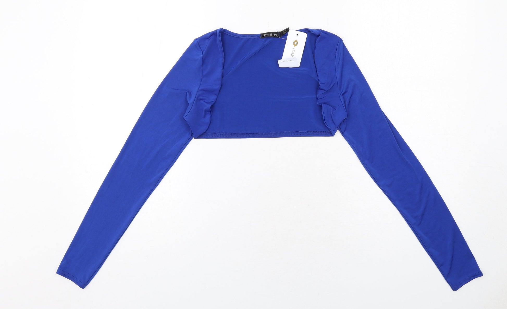 I SAW IT FIRST Womens Blue Polyester Cropped Blouse Size 6 Boat Neck - Shrug Top