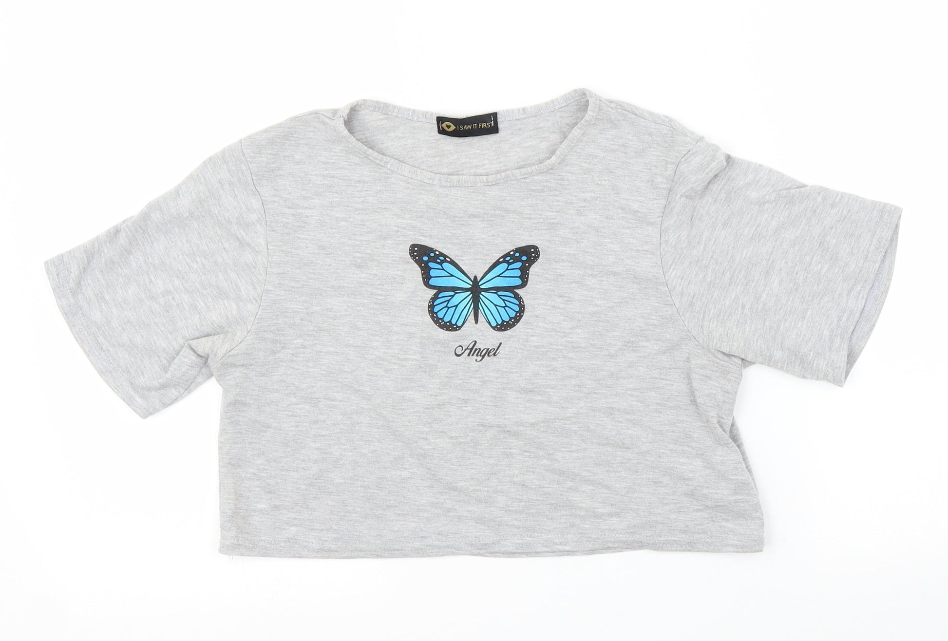 I SAW IT FIRST Womens Grey Cropped T-Shirt Size 8