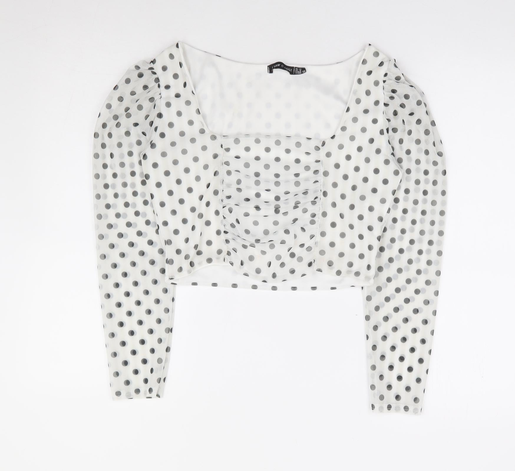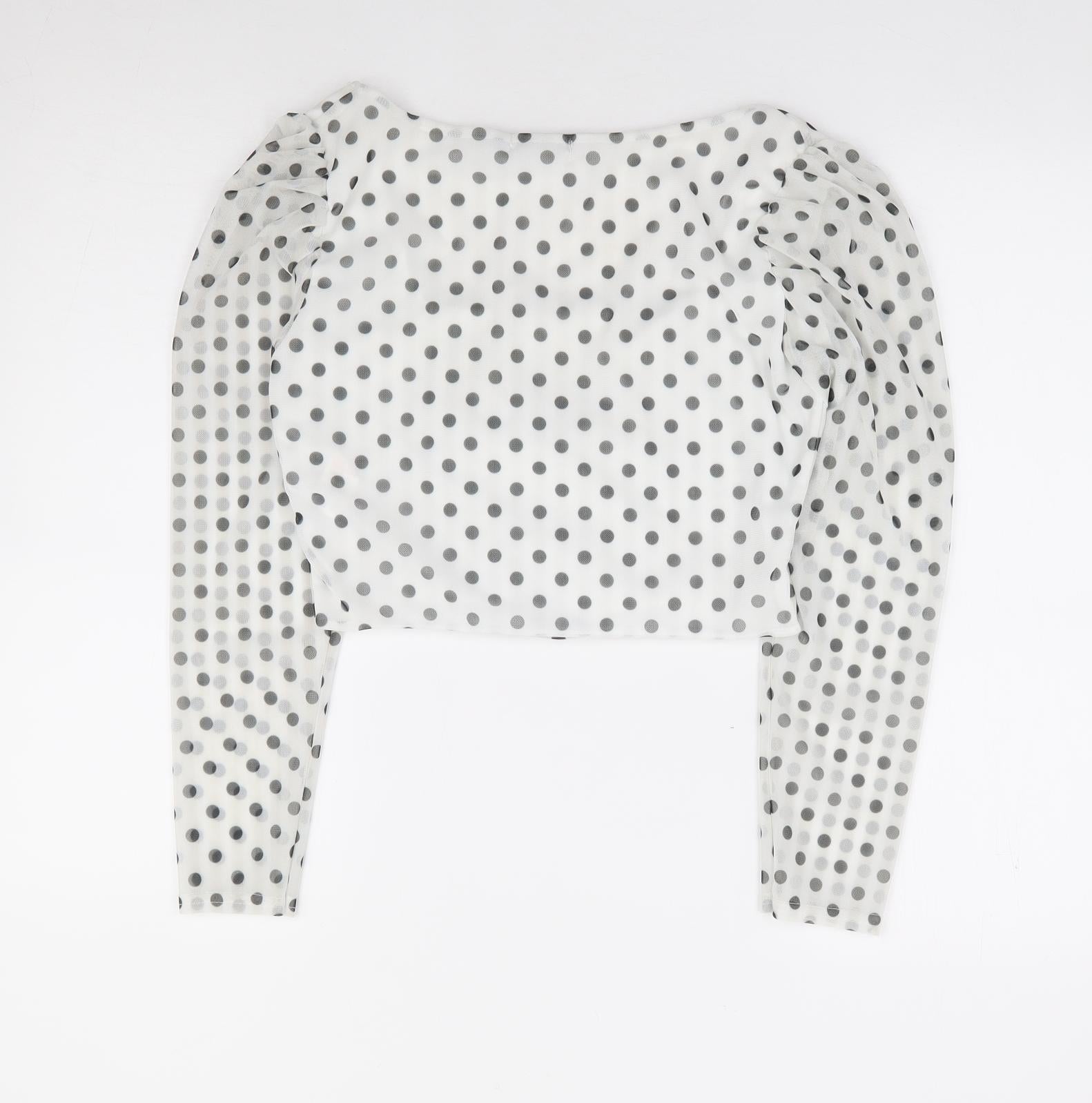 I SAW IT FIRST Womens Ivory Polka Dot Polyester Cropped Blouse Size 12 Square Neck