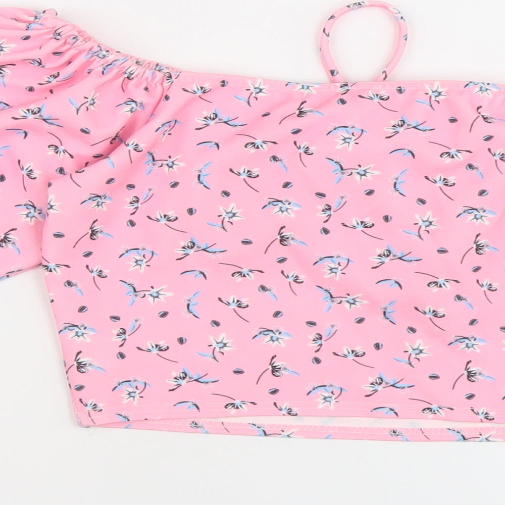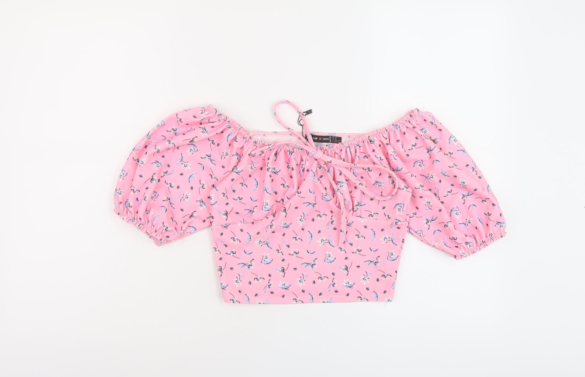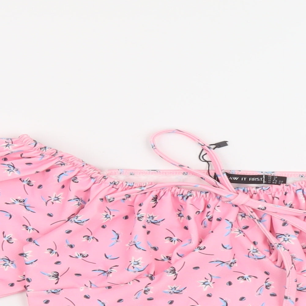 I SAW IT FIRST Womens Pink Geometric Polyester Cropped T-Shirt Size 10 Square Neck