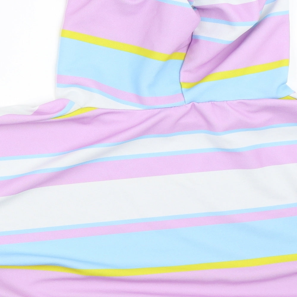 I SAW IT FIRST Womens Purple Striped Basic T-Shirt Size M
