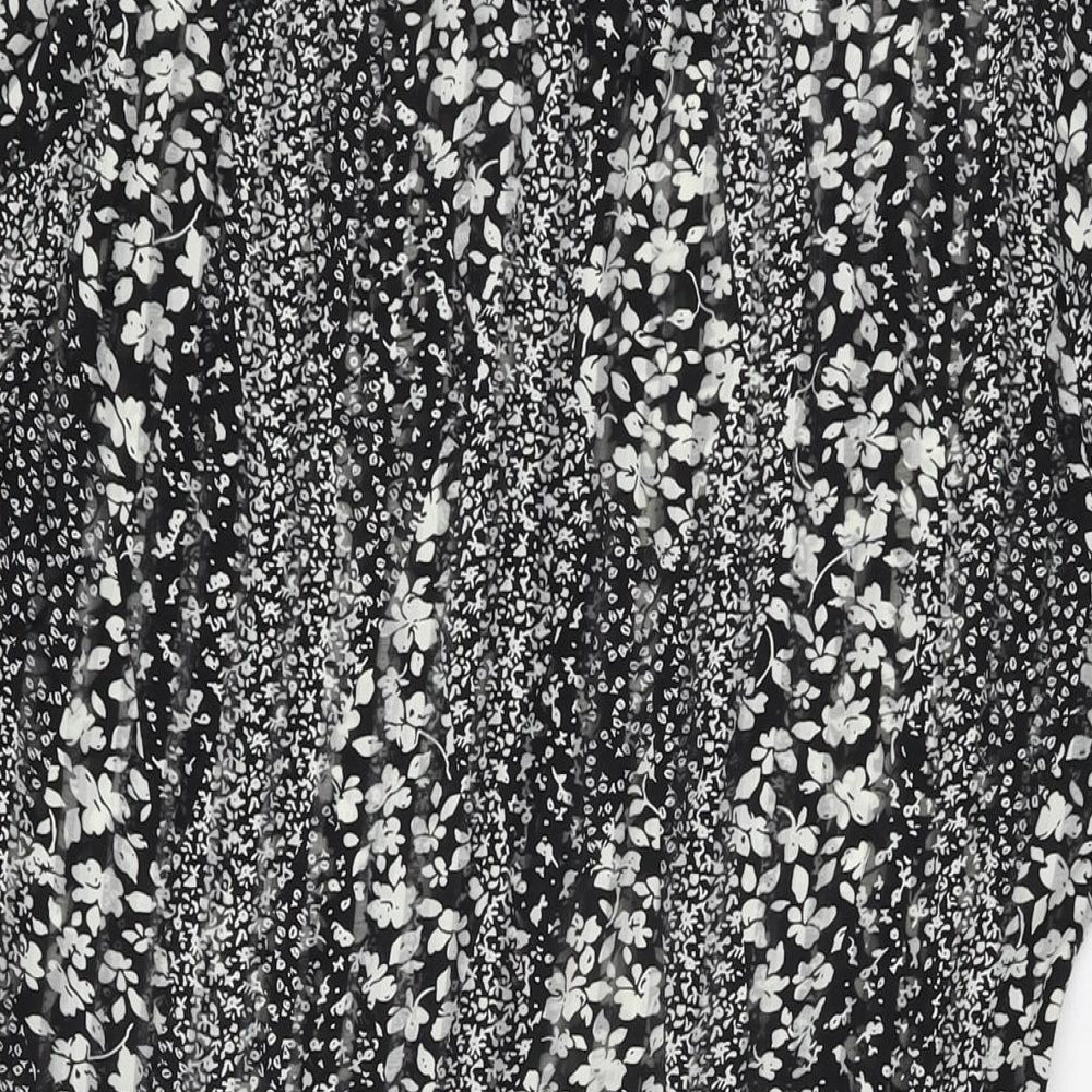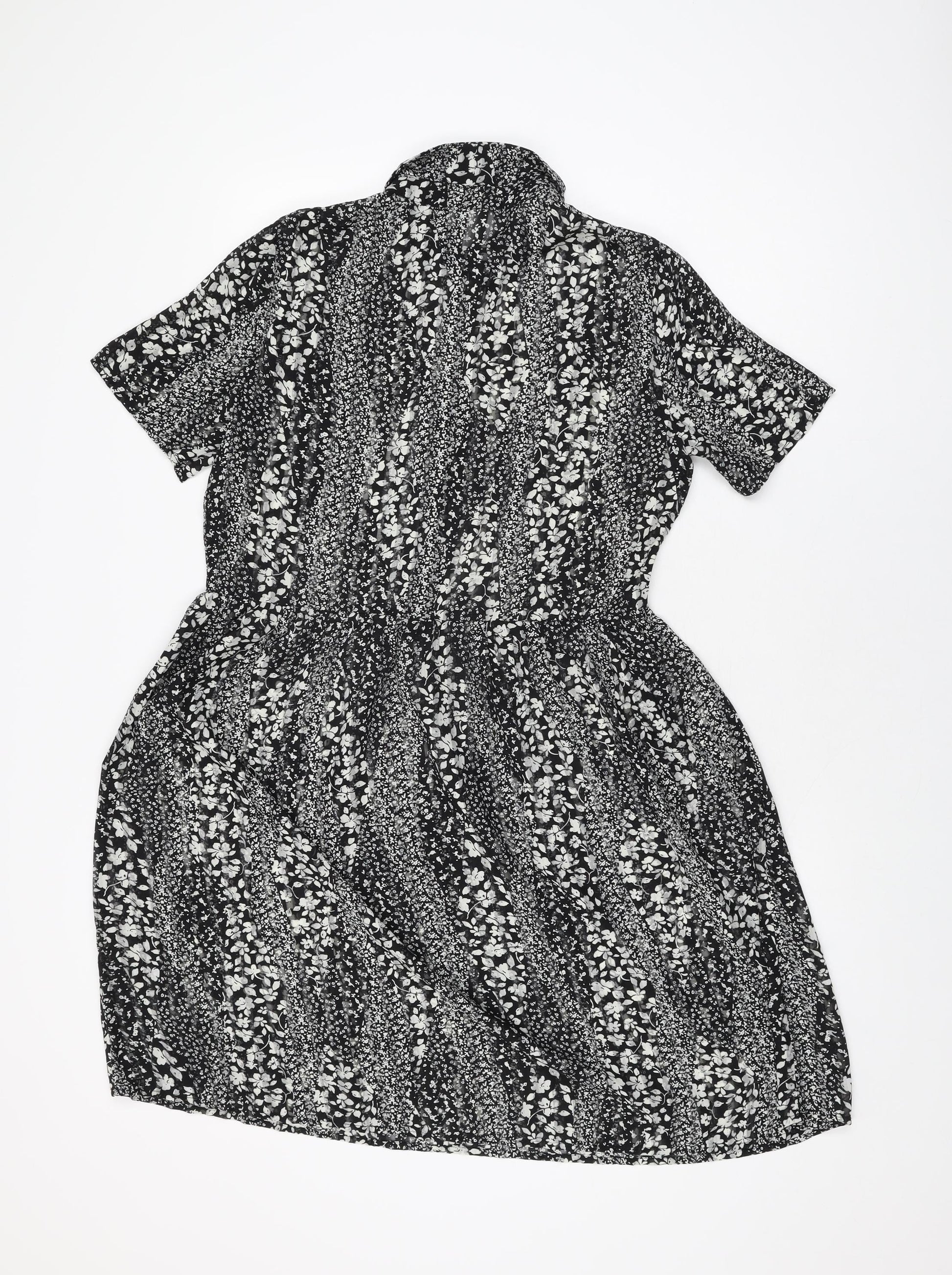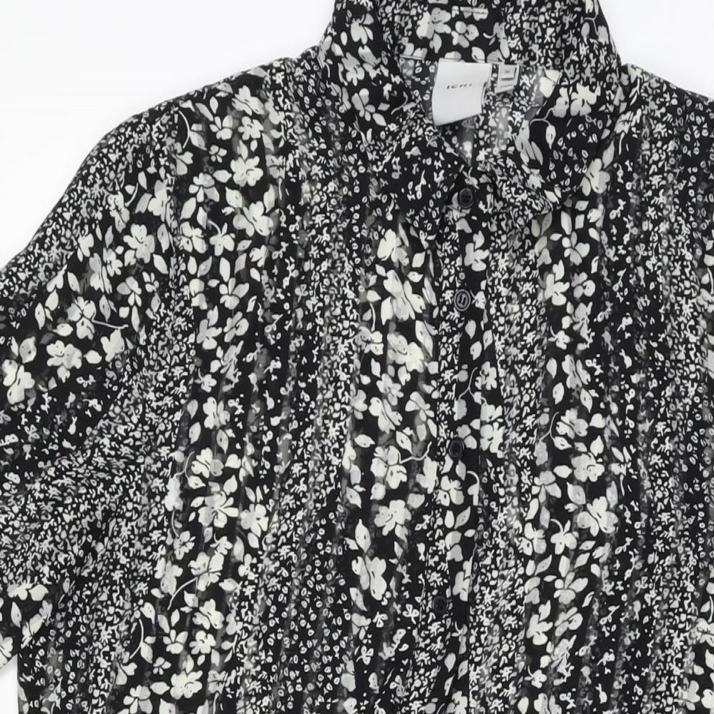 ICHI Womens Black Floral Polyester Skater Dress Size 8 Collared Button