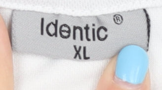 Identic Men's White XL Football V-Neck Logo T-Shirt