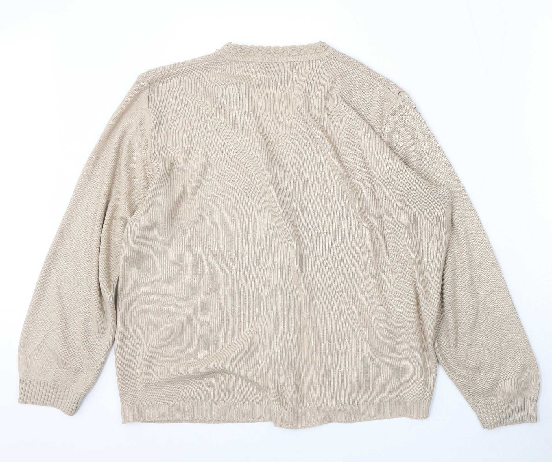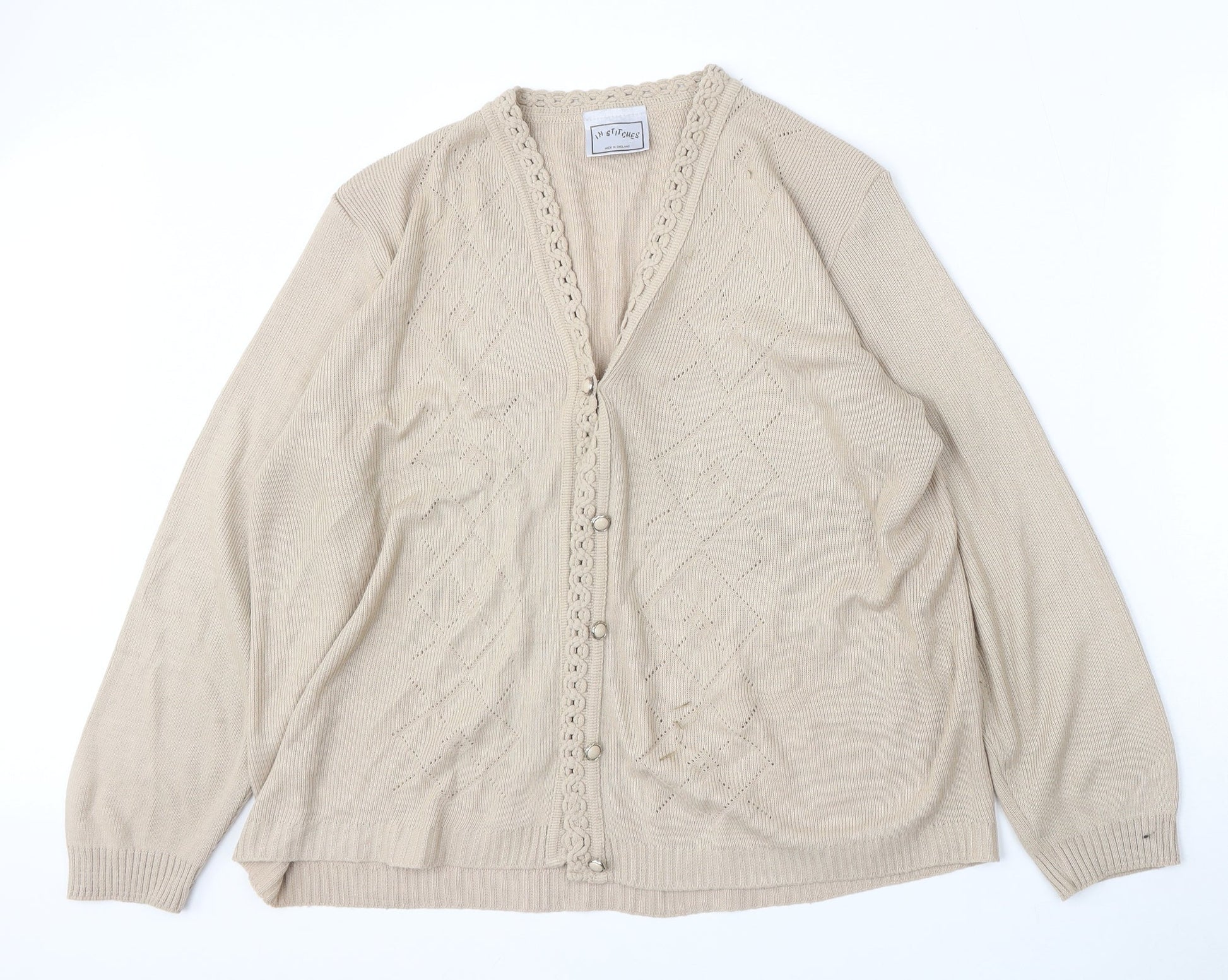 In Stitches Womens Beige V-Neck Acrylic Cardigan Jumper Size M