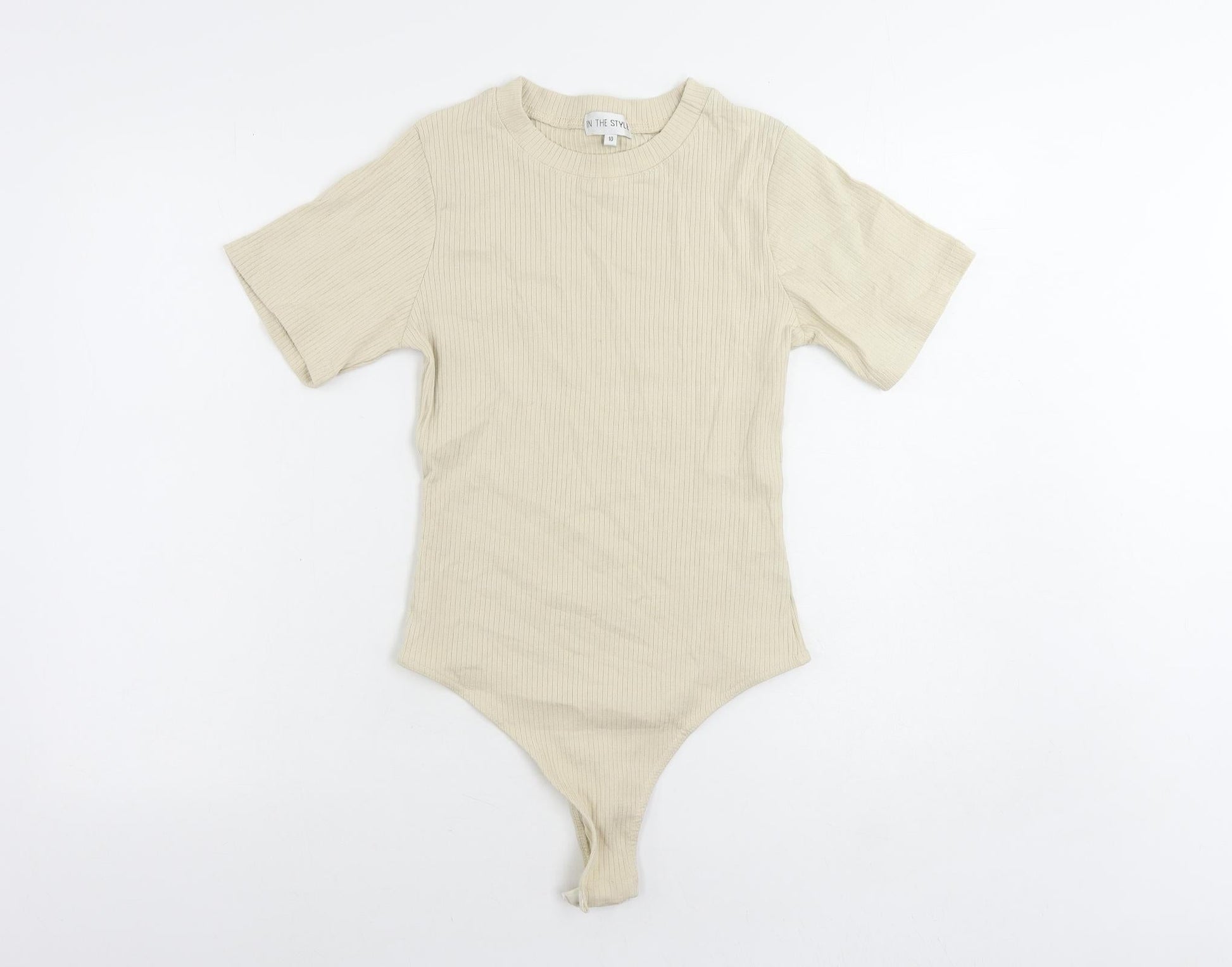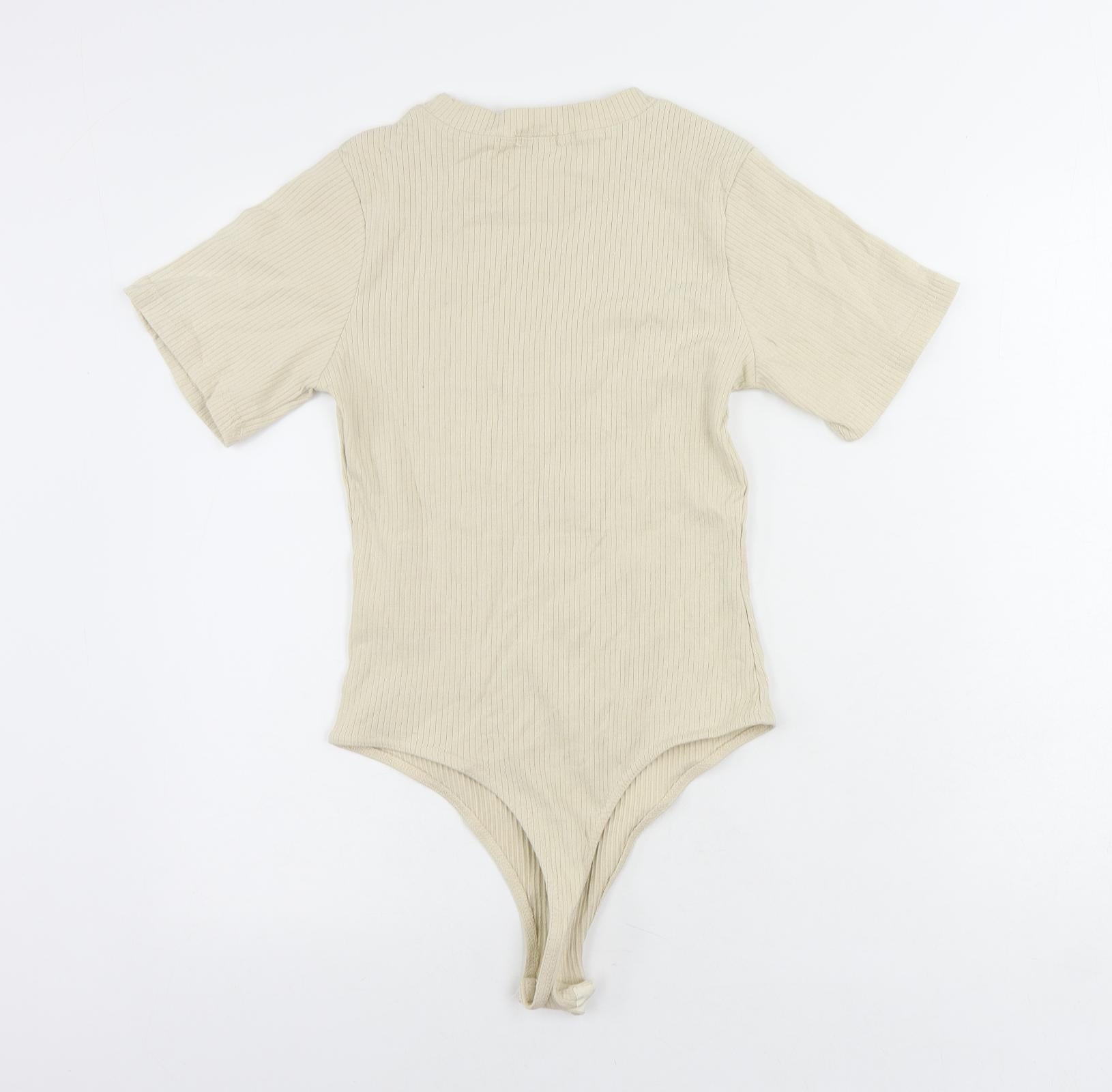 In the Style Womens Beige Cotton Bodysuit One-Piece Size 10 Snap - Ribbed