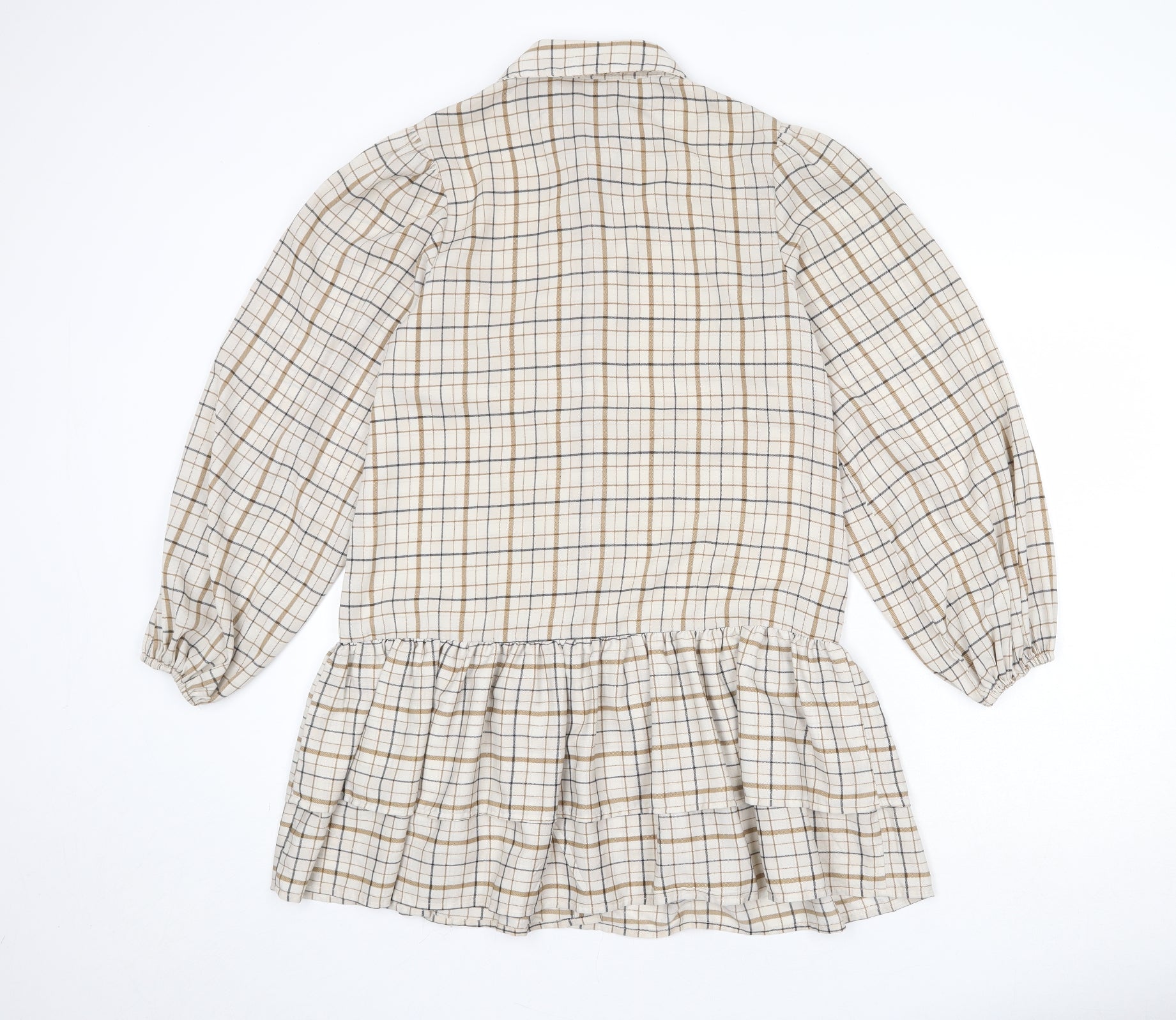 In the Style Womens Beige Plaid Polyester Shirt Dress Size 8 Collared Button