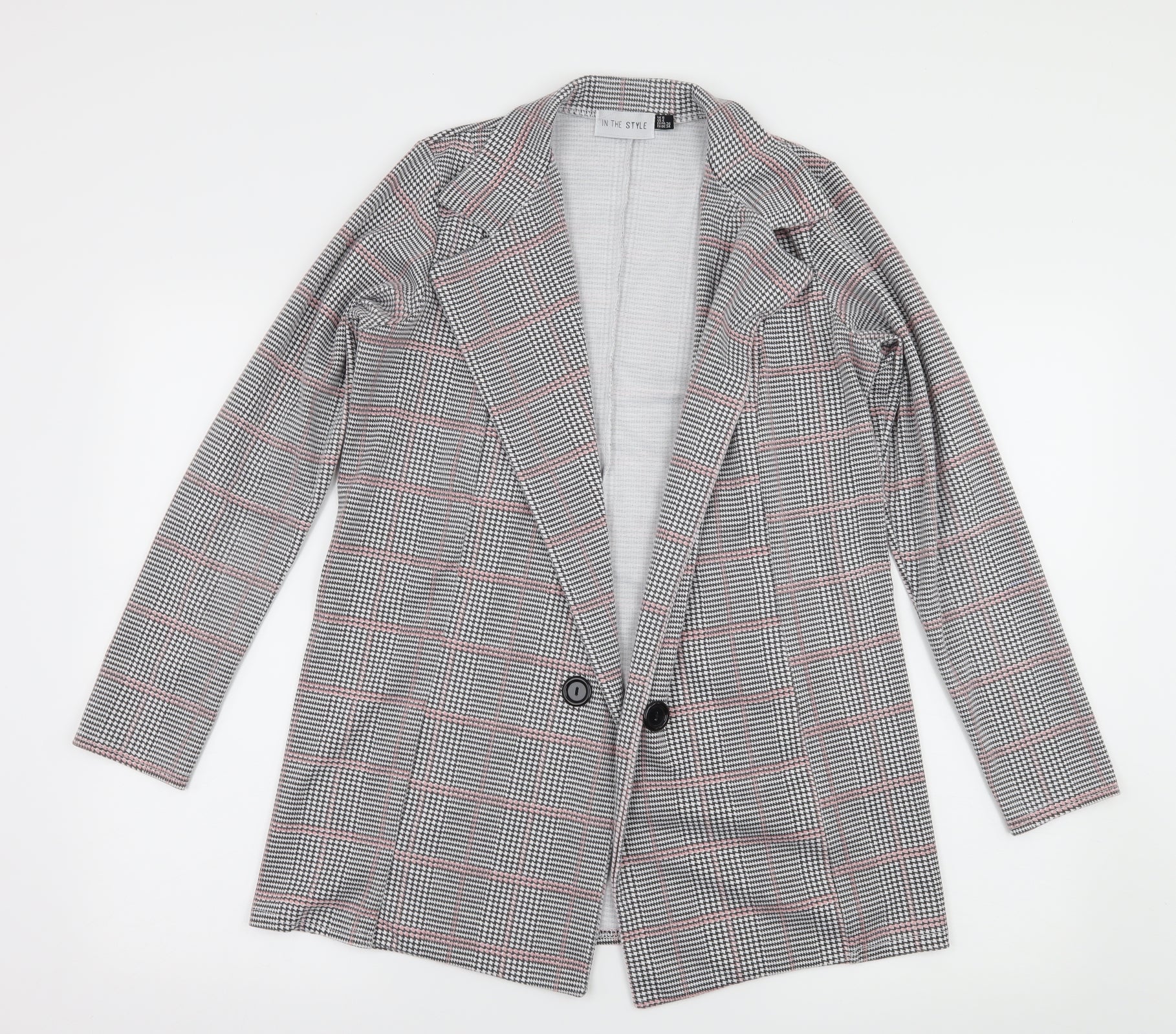 In the Style Womens Grey Houndstooth Jersey Jacket Blazer Size 8