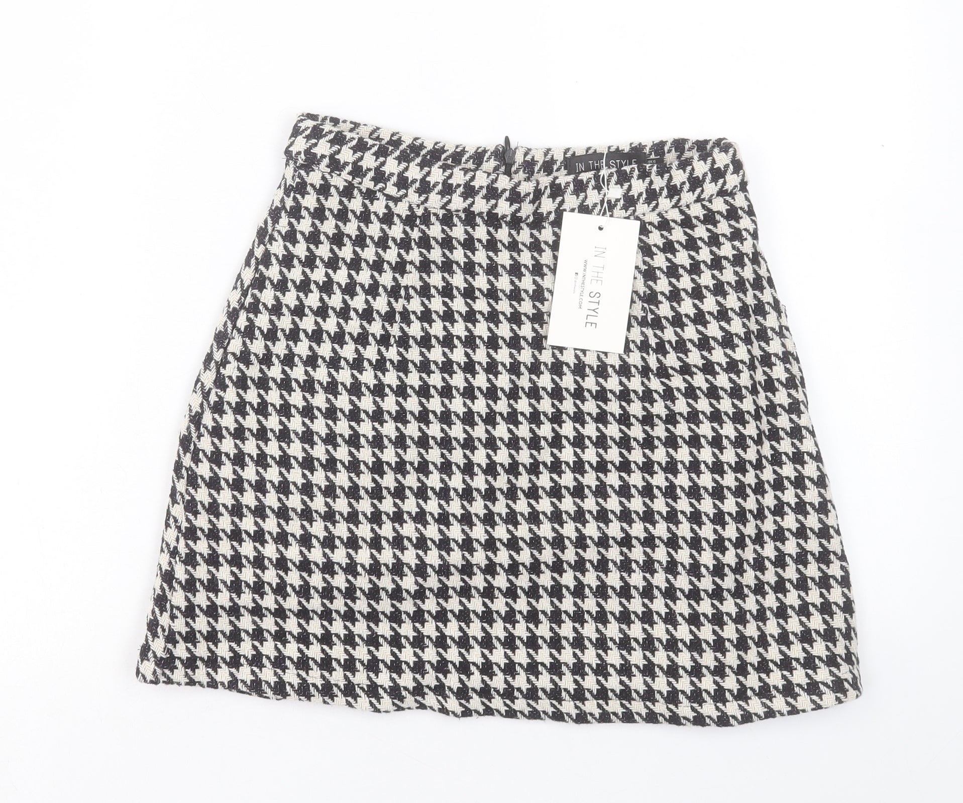 In the Style Womens White Plaid Polyester A-Line Skirt Size 6 Zip