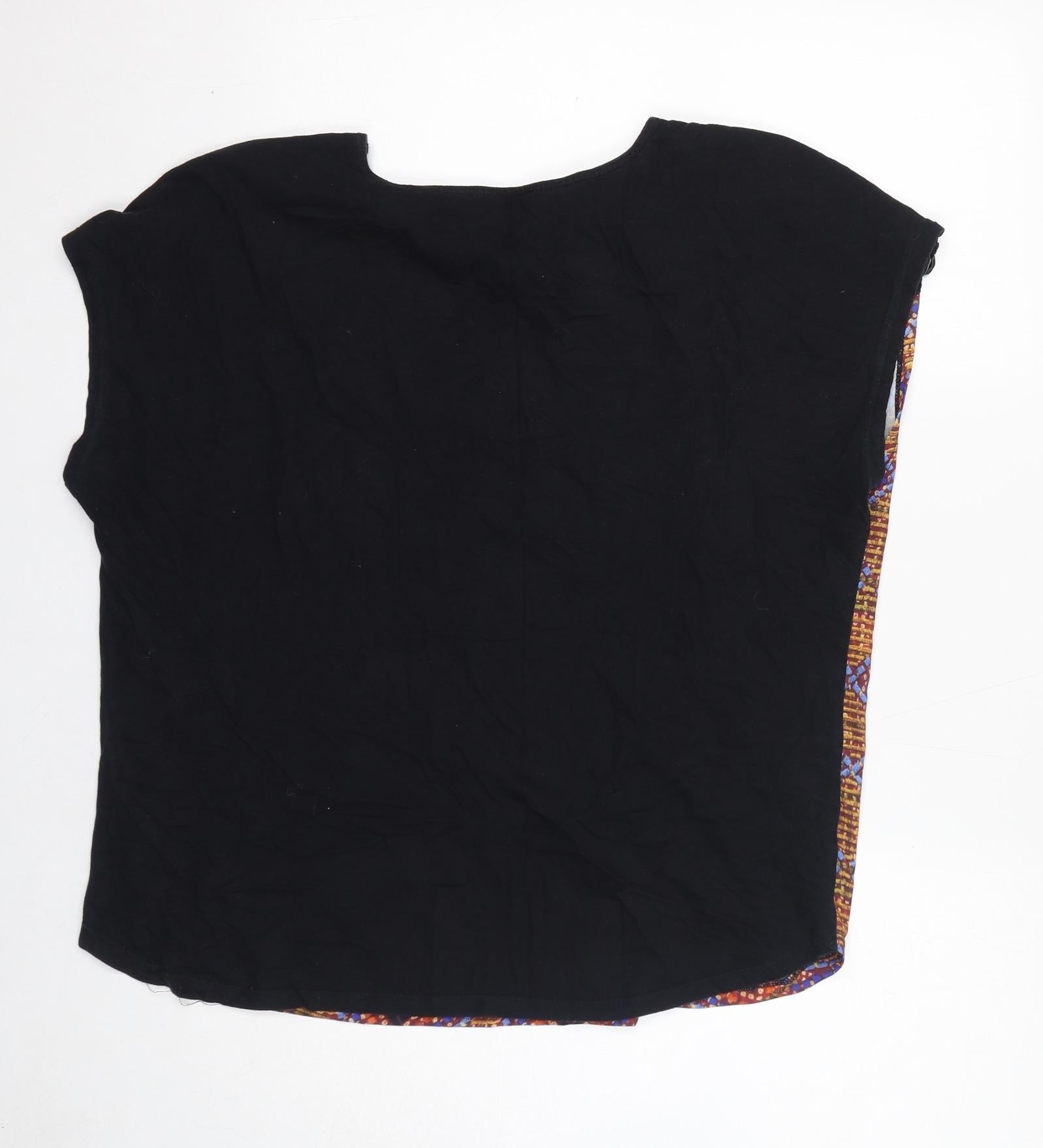 Indigo Womens Black Geometric Polyester Basic Blouse Size 18 Boat Neck