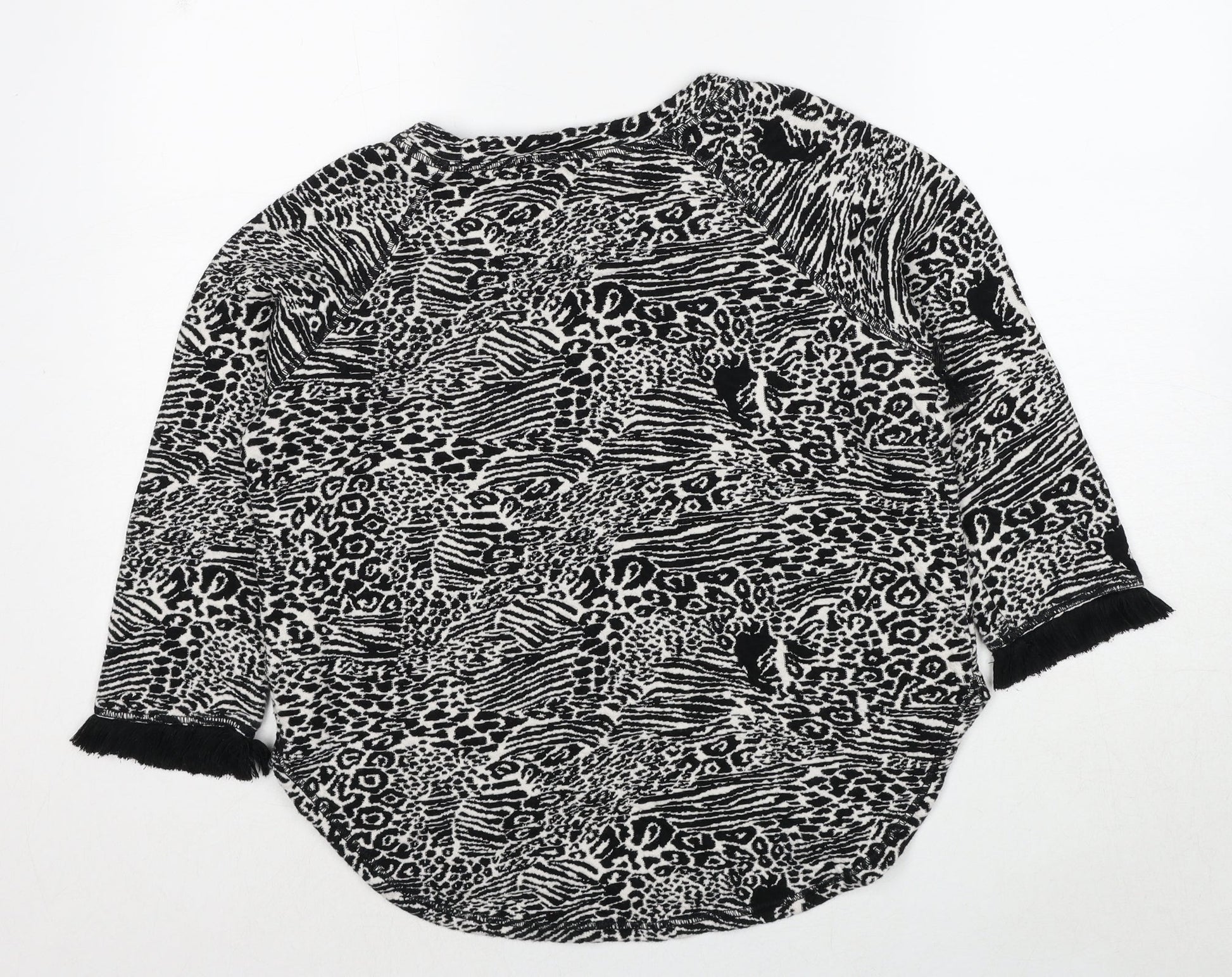 Indigo Womens Black Round Neck Animal Print Cotton Pullover Jumper Size 12 - Tiger Print