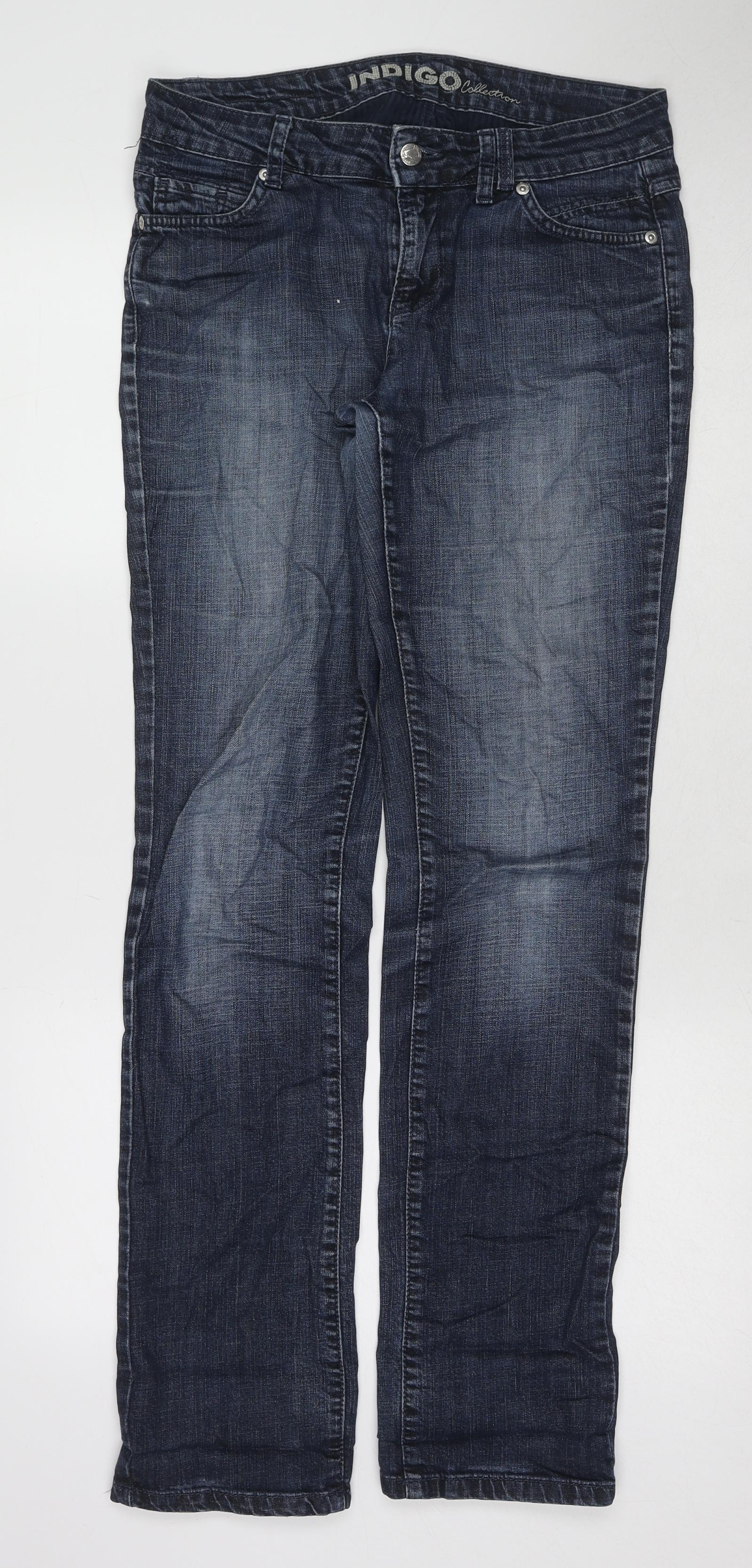 Indigo Womens Blue Cotton Straight Jeans Size 10 L32 in Regular Button