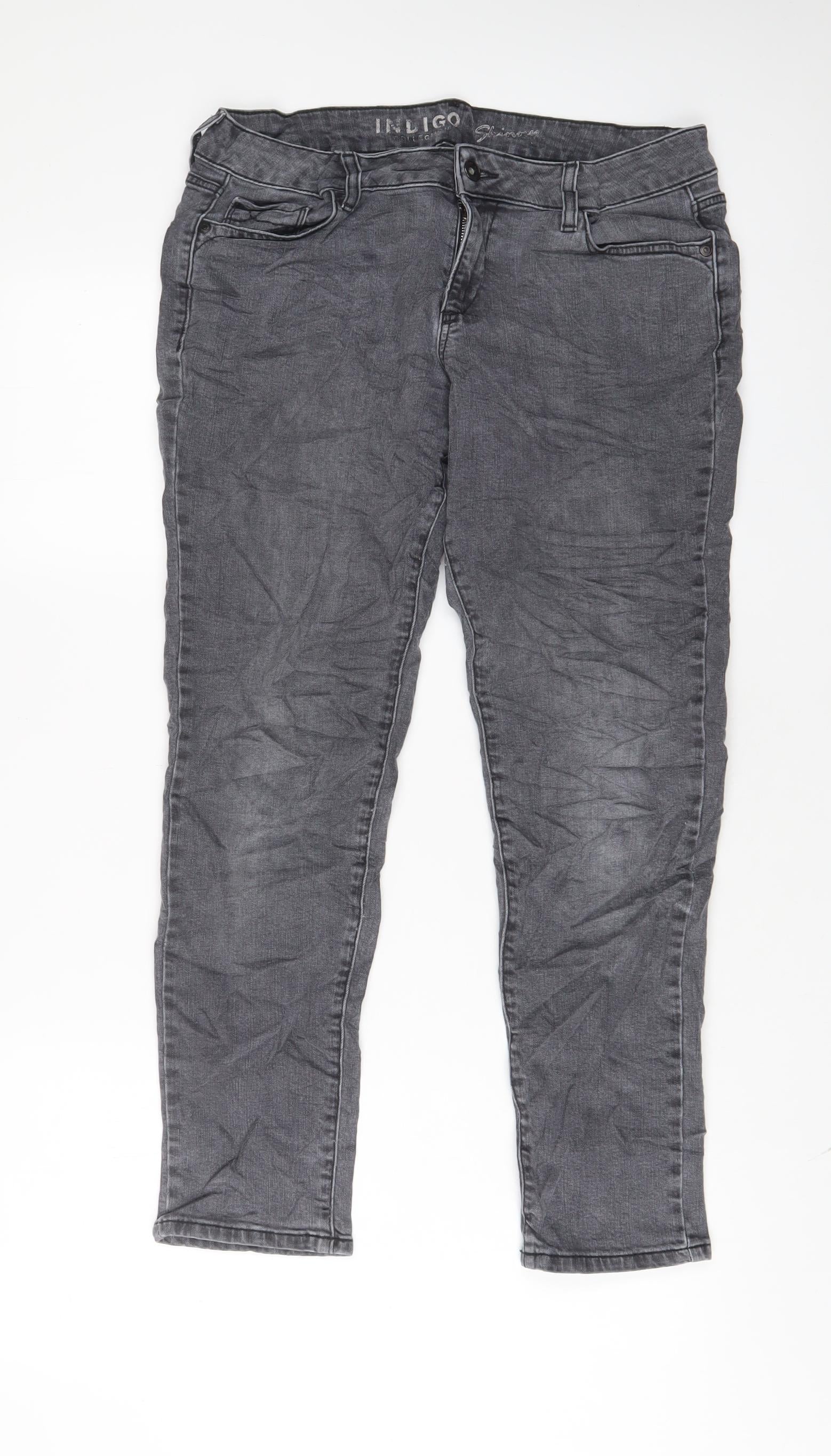 Indigo Womens Grey Cotton Skinny Jeans Size 14 L28 in Regular Zip