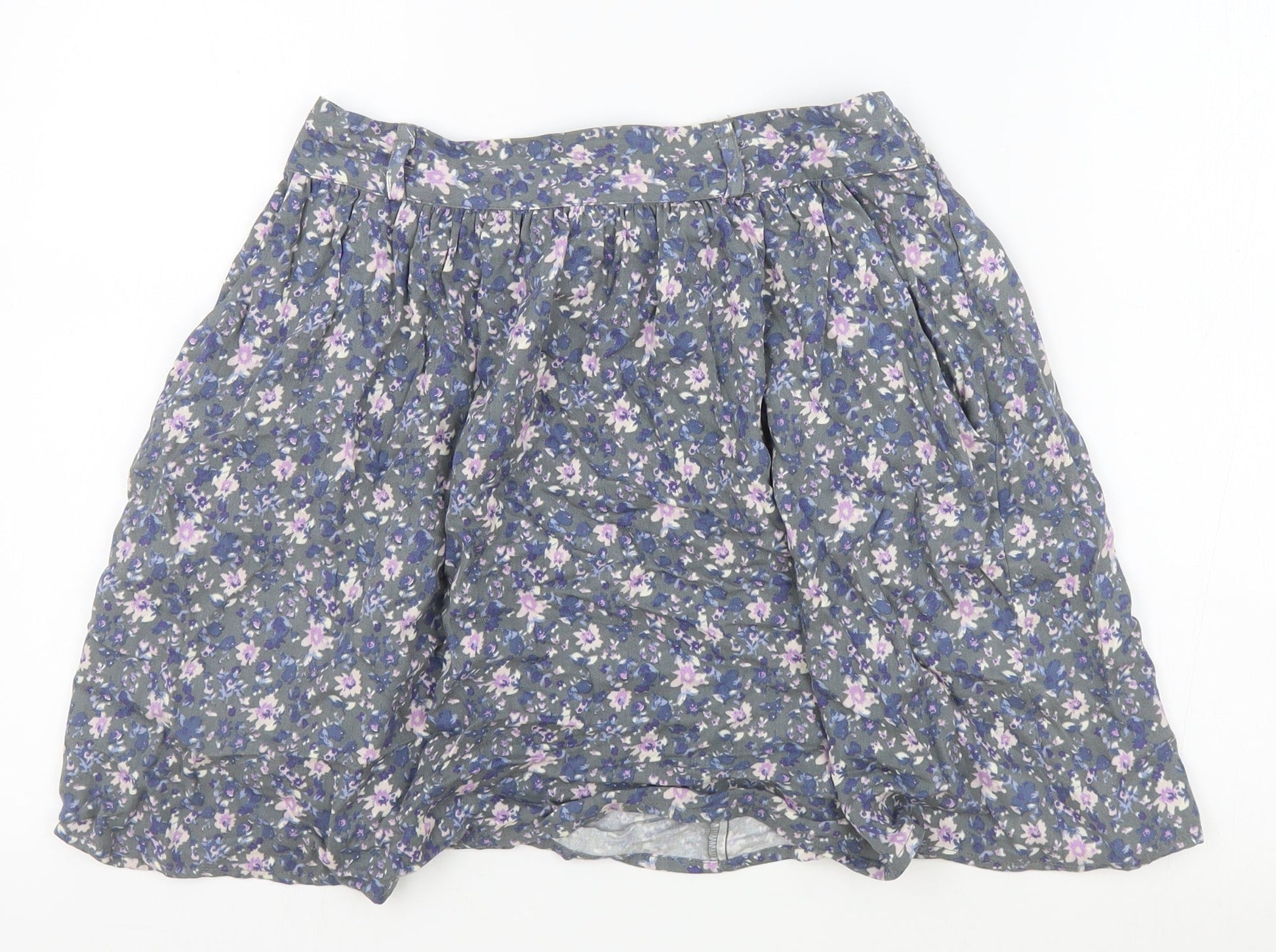 Indigo Womens Grey Floral Viscose Mini Skirt Size 10