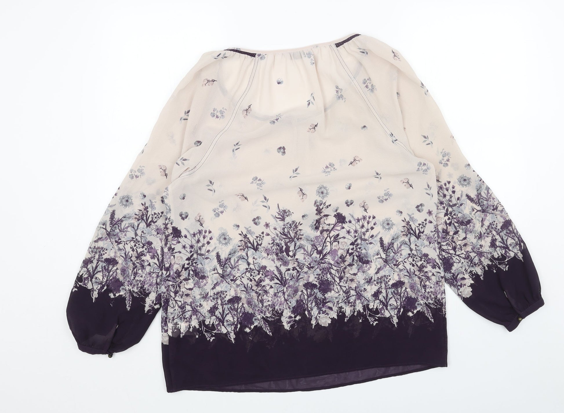 Indigo Womens Pink Geometric Polyester Basic Blouse Size 12 Round Neck