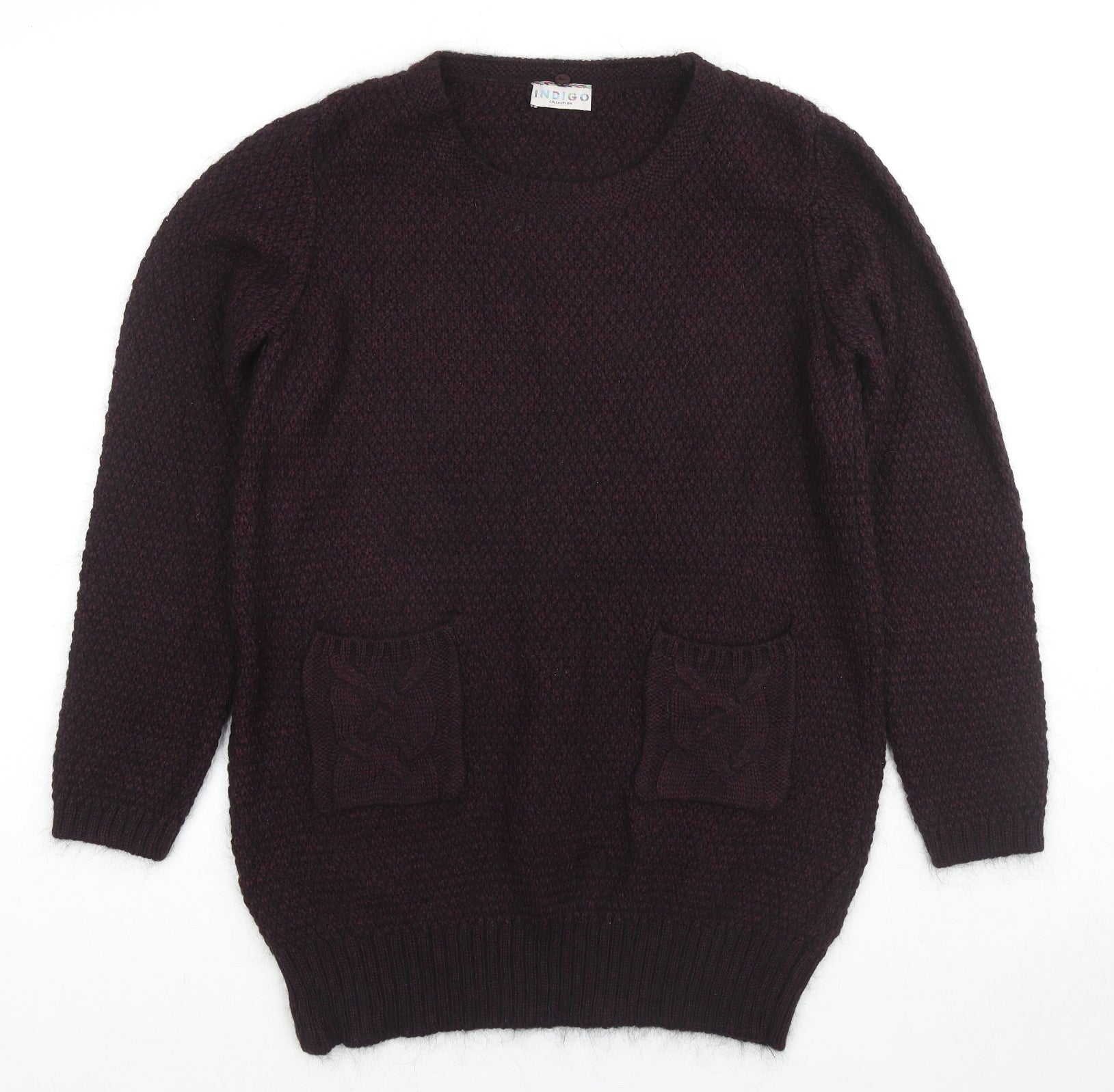 Indigo Womens Purple Round Neck Acrylic Pullover Jumper Size 14