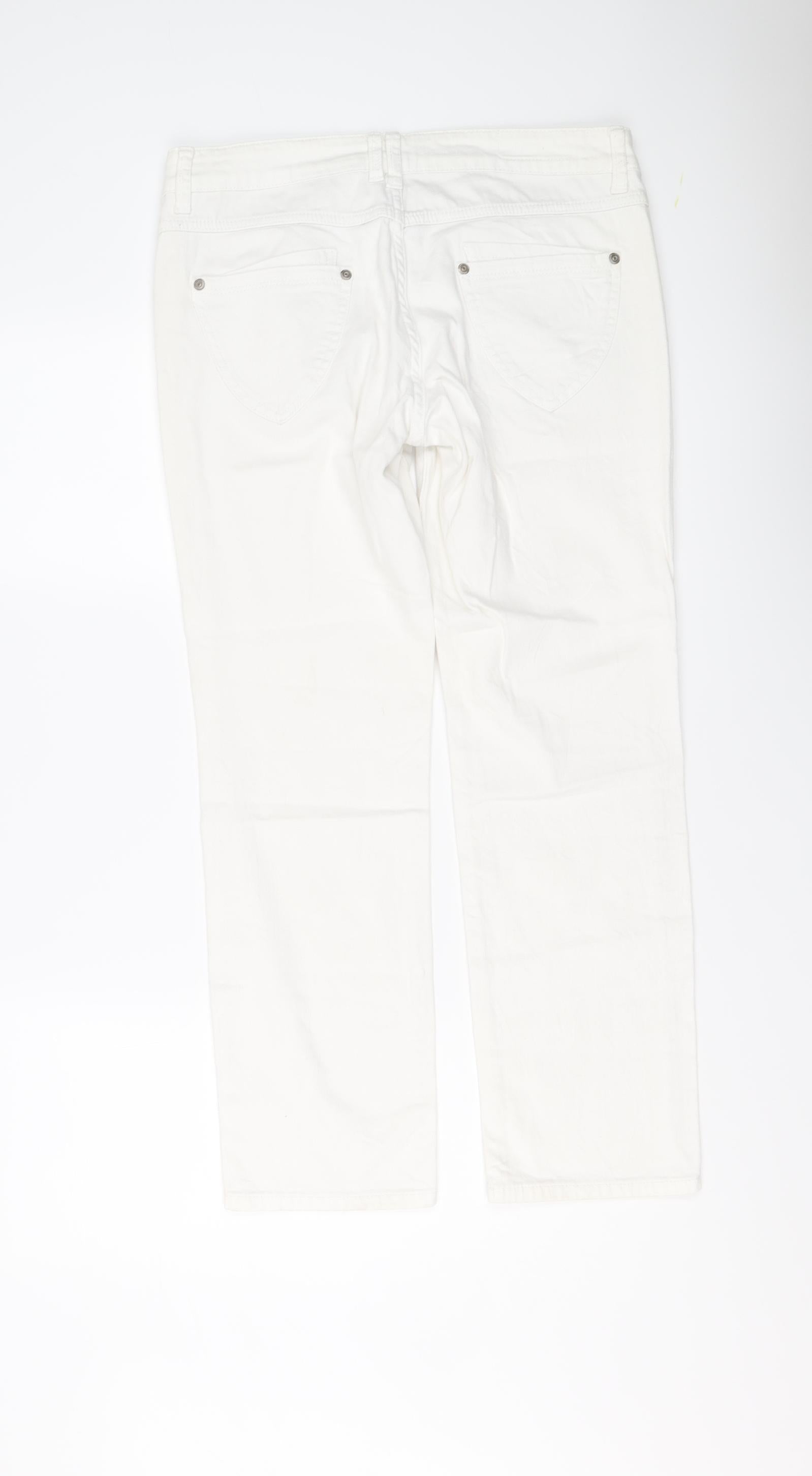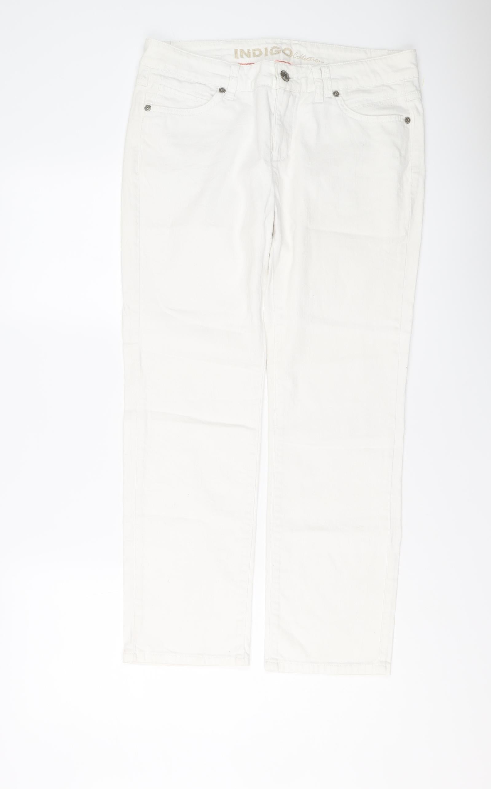 Indigo Womens White Cotton Straight Jeans Size 12 L27 in Regular Button