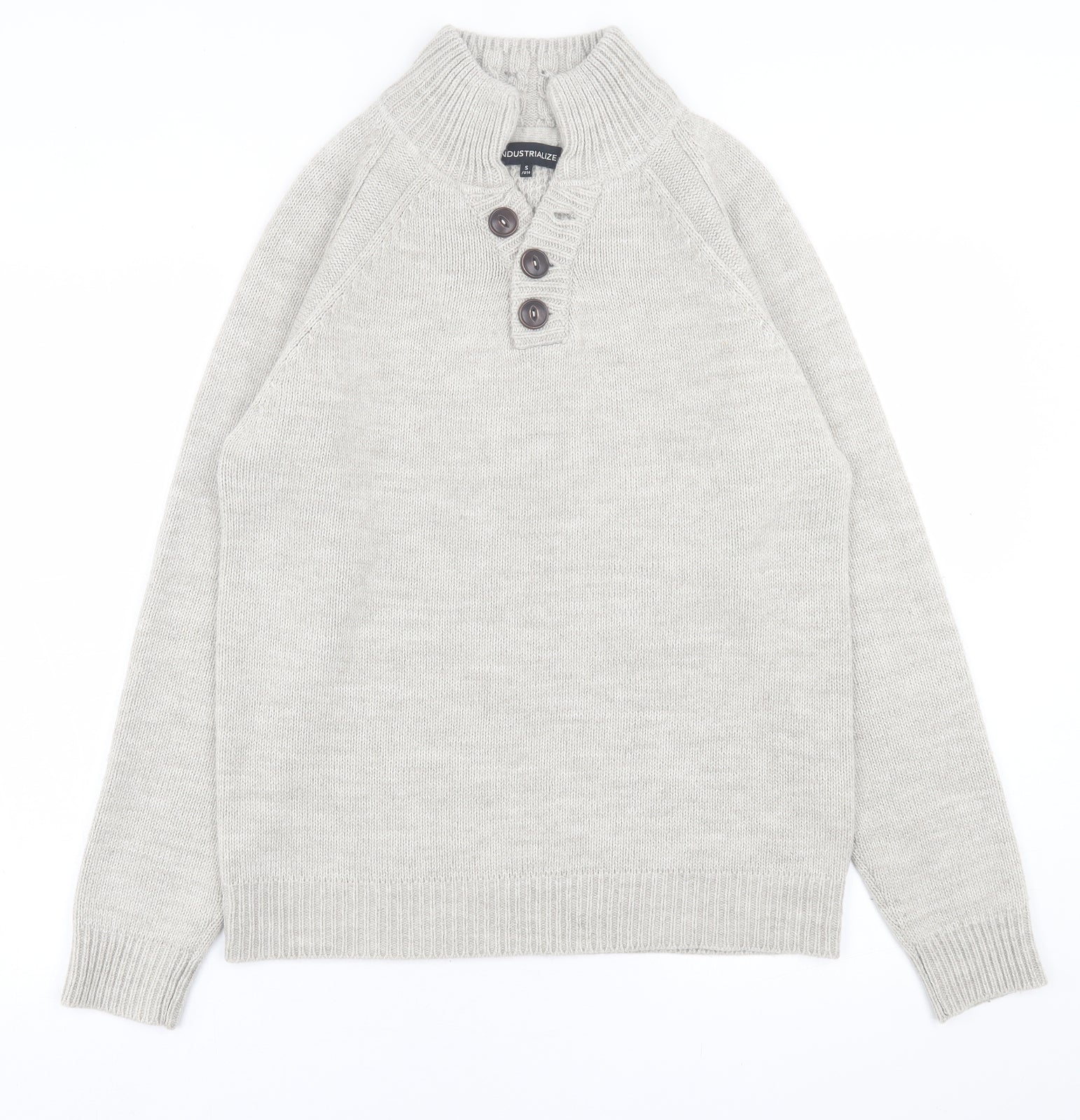Industrialize Mens Grey High Neck Acrylic Pullover Jumper Size S
