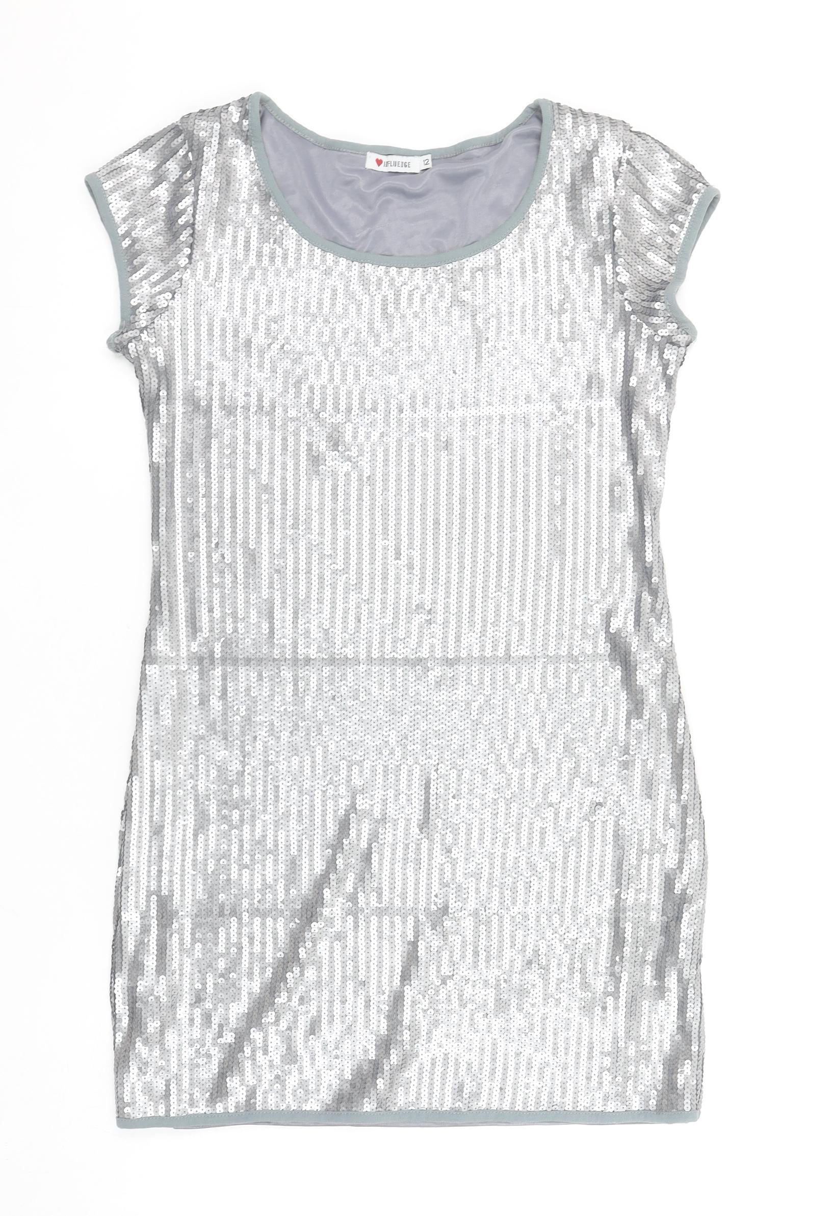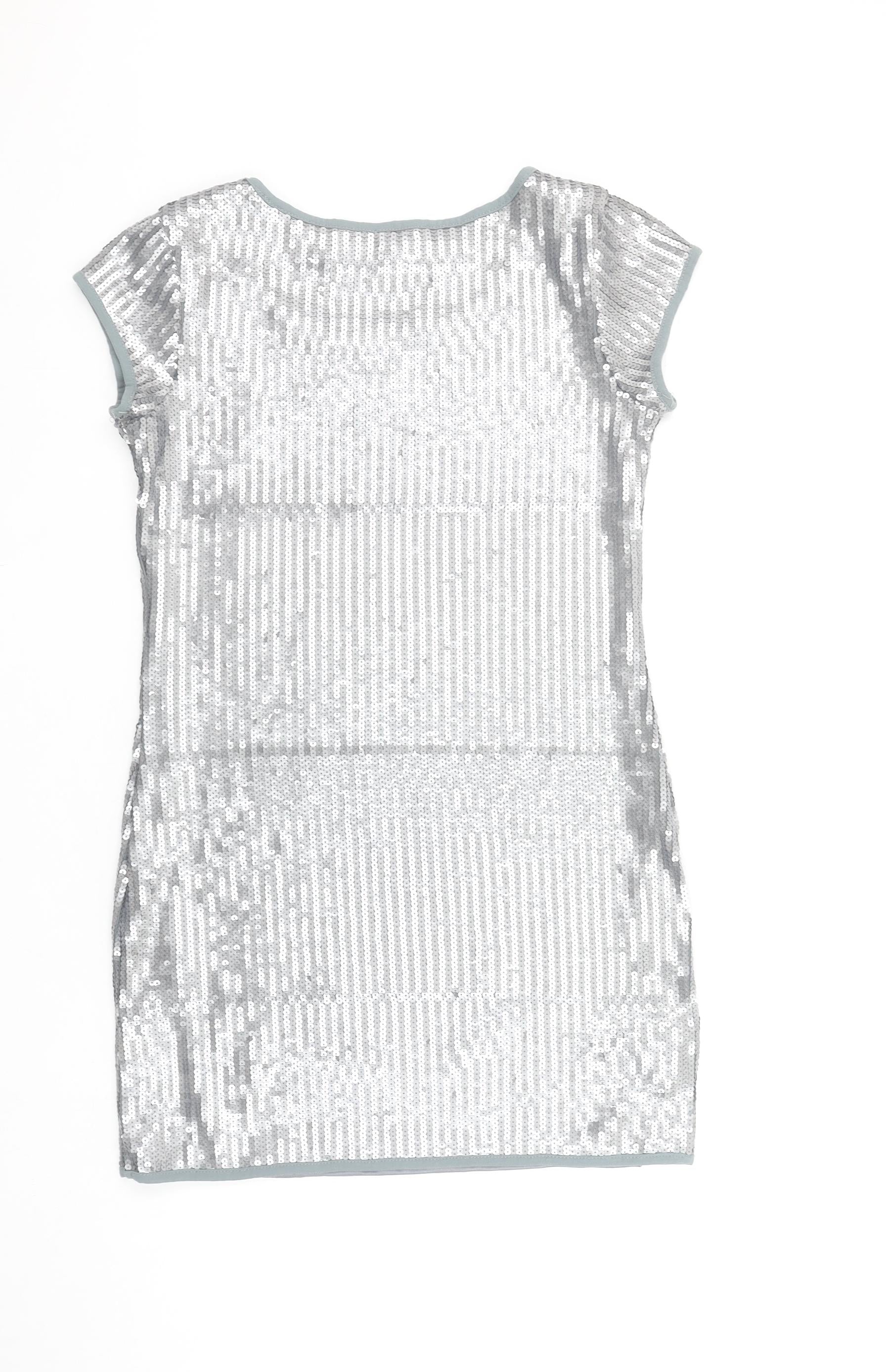Influence Women Silver Sequin Bodycon Short Sleeve Dress Size 12