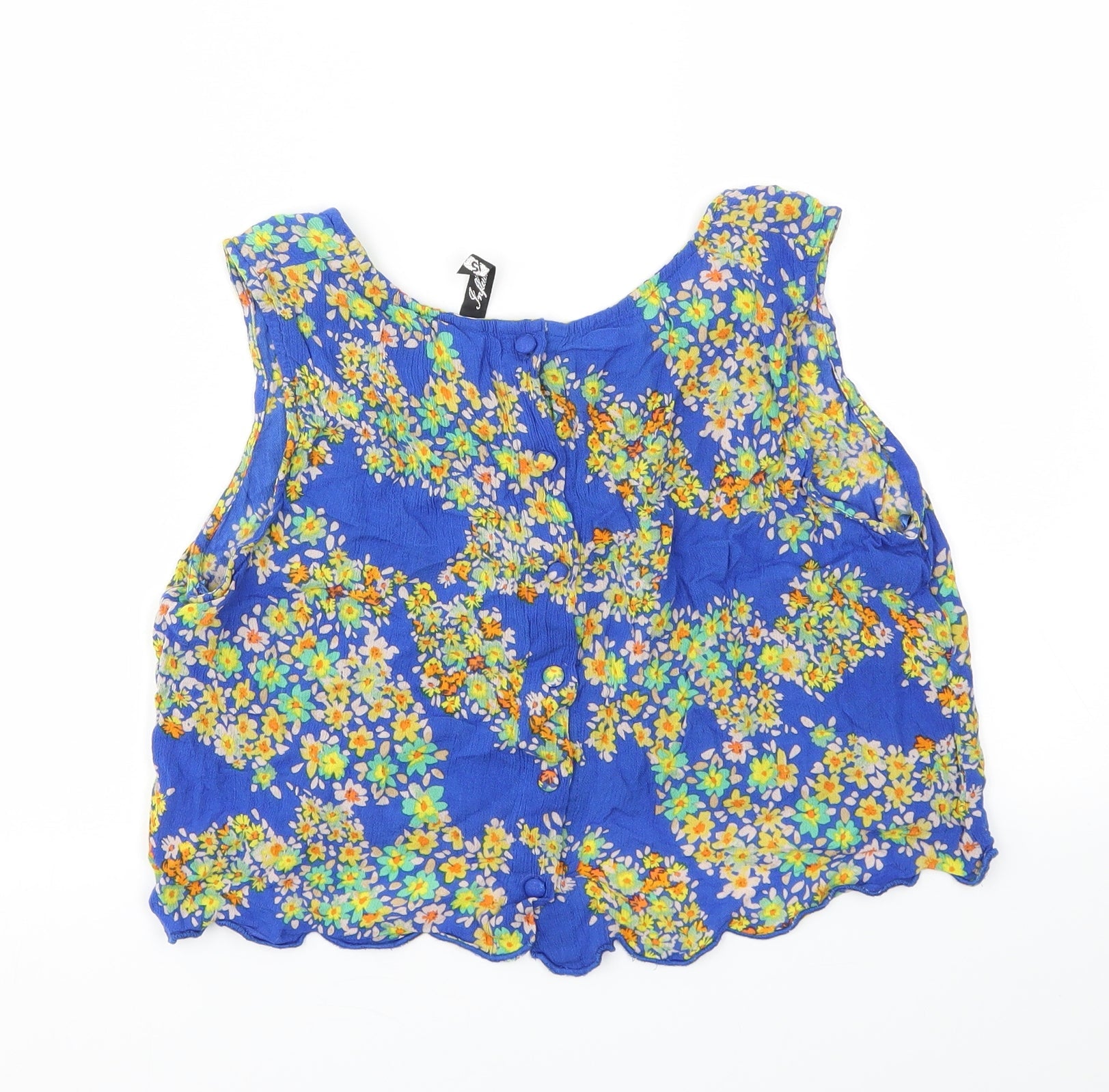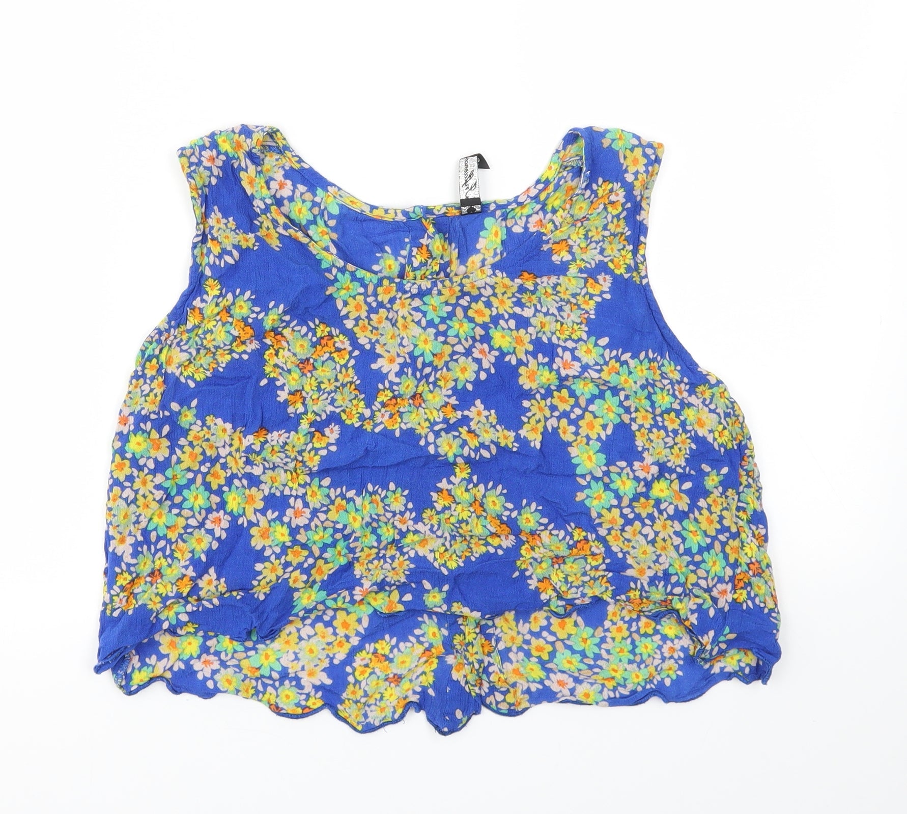 influence Womens Blue Floral Basic T-Shirt Size 12