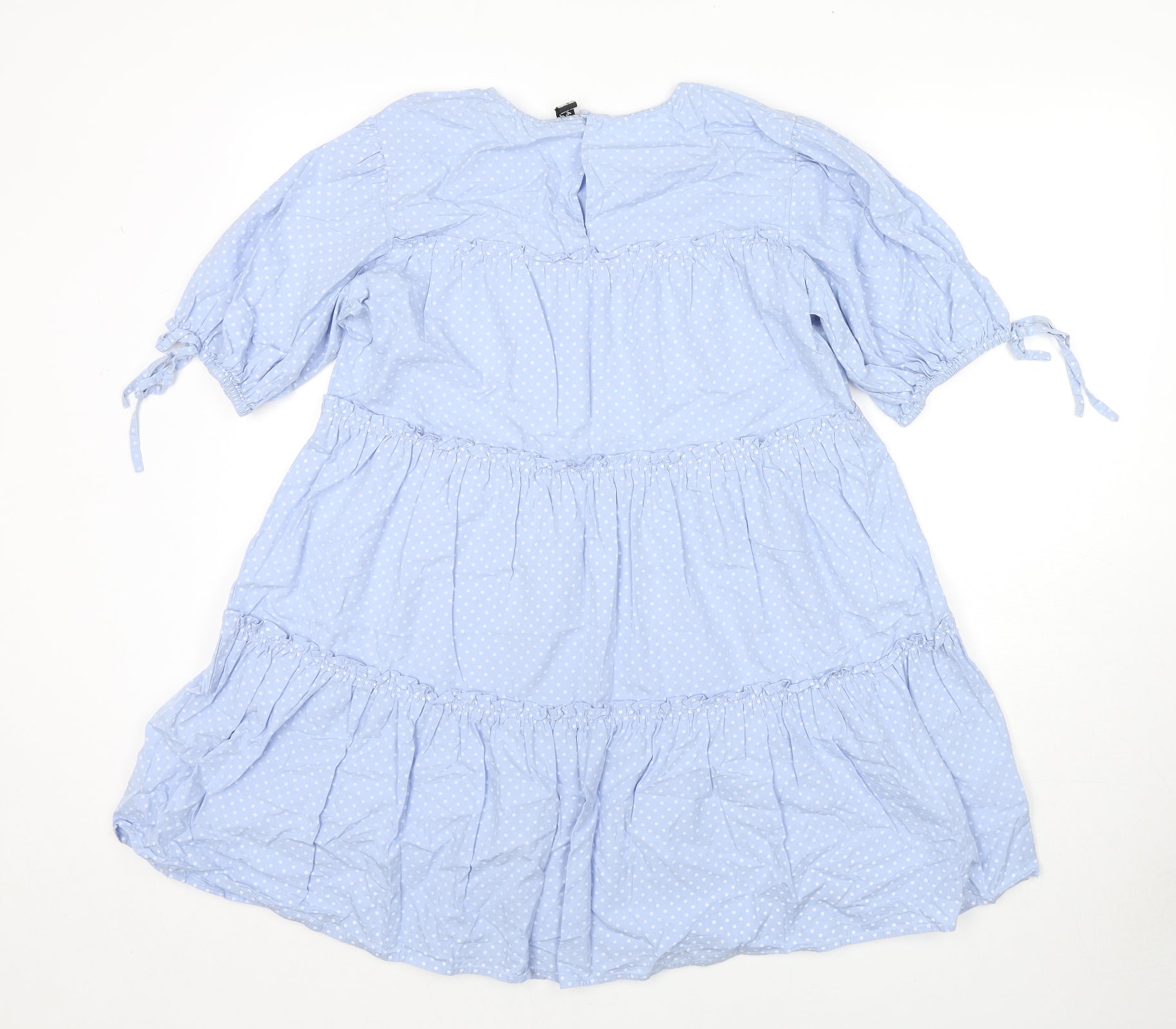 Influence Womens Blue Polka Dot Cotton T-Shirt Dress Size 14 V-Neck Button