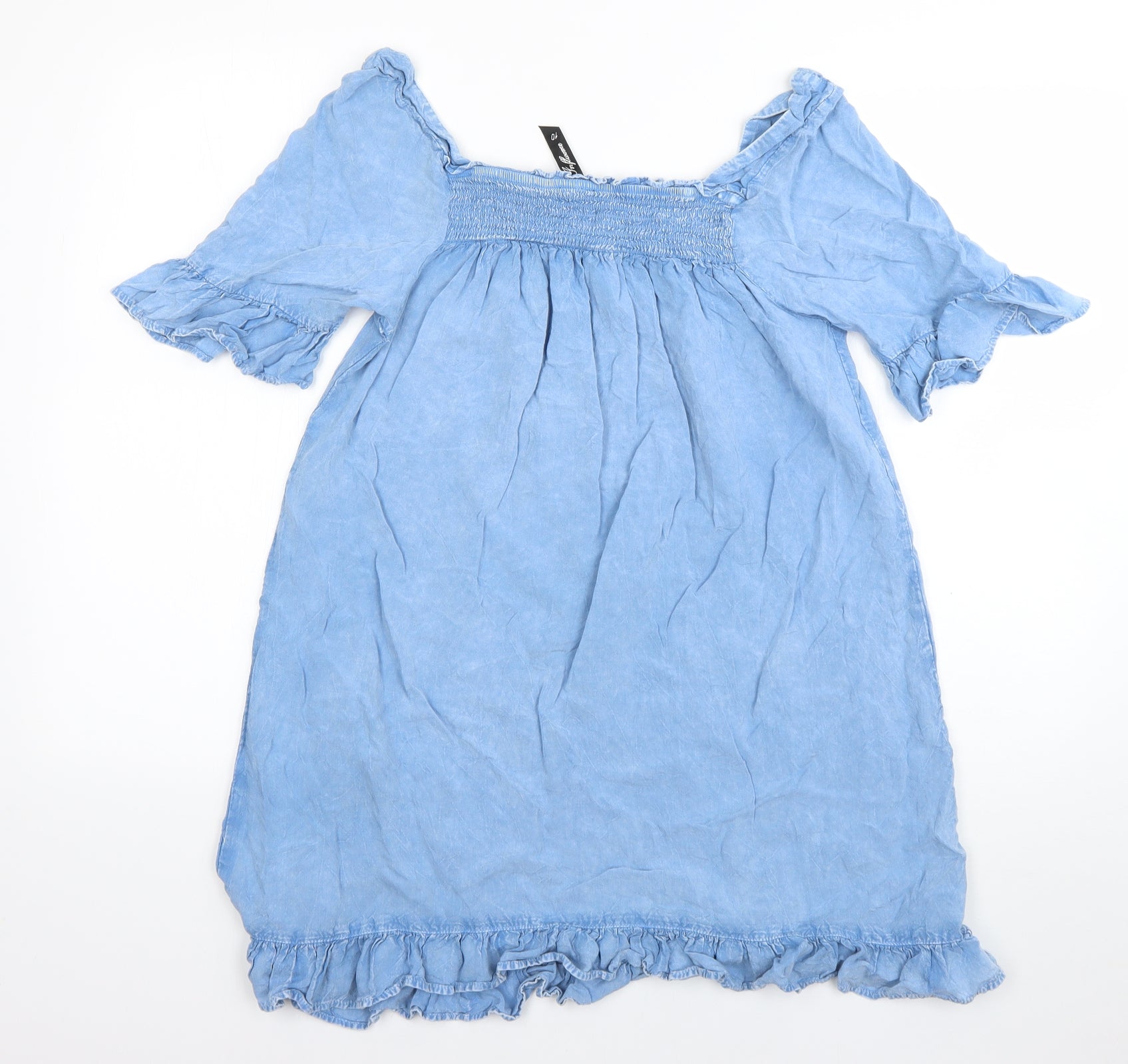 influence Womens Blue Viscose Basic T-Shirt Size 10 Square Neck