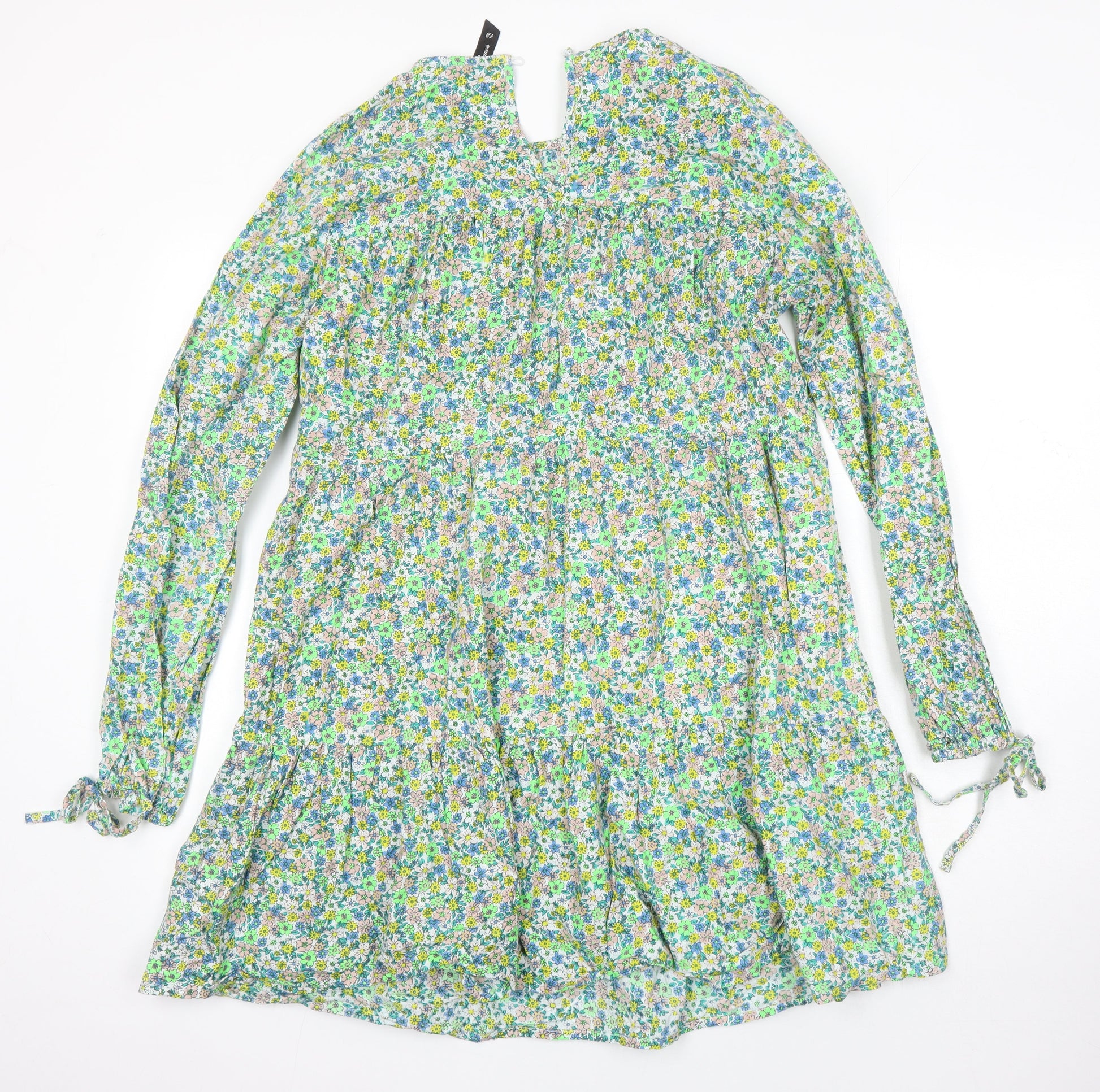 Influence Womens Multicoloured Floral 100% Cotton Tunic Blouse Size 12 Scoop Neck