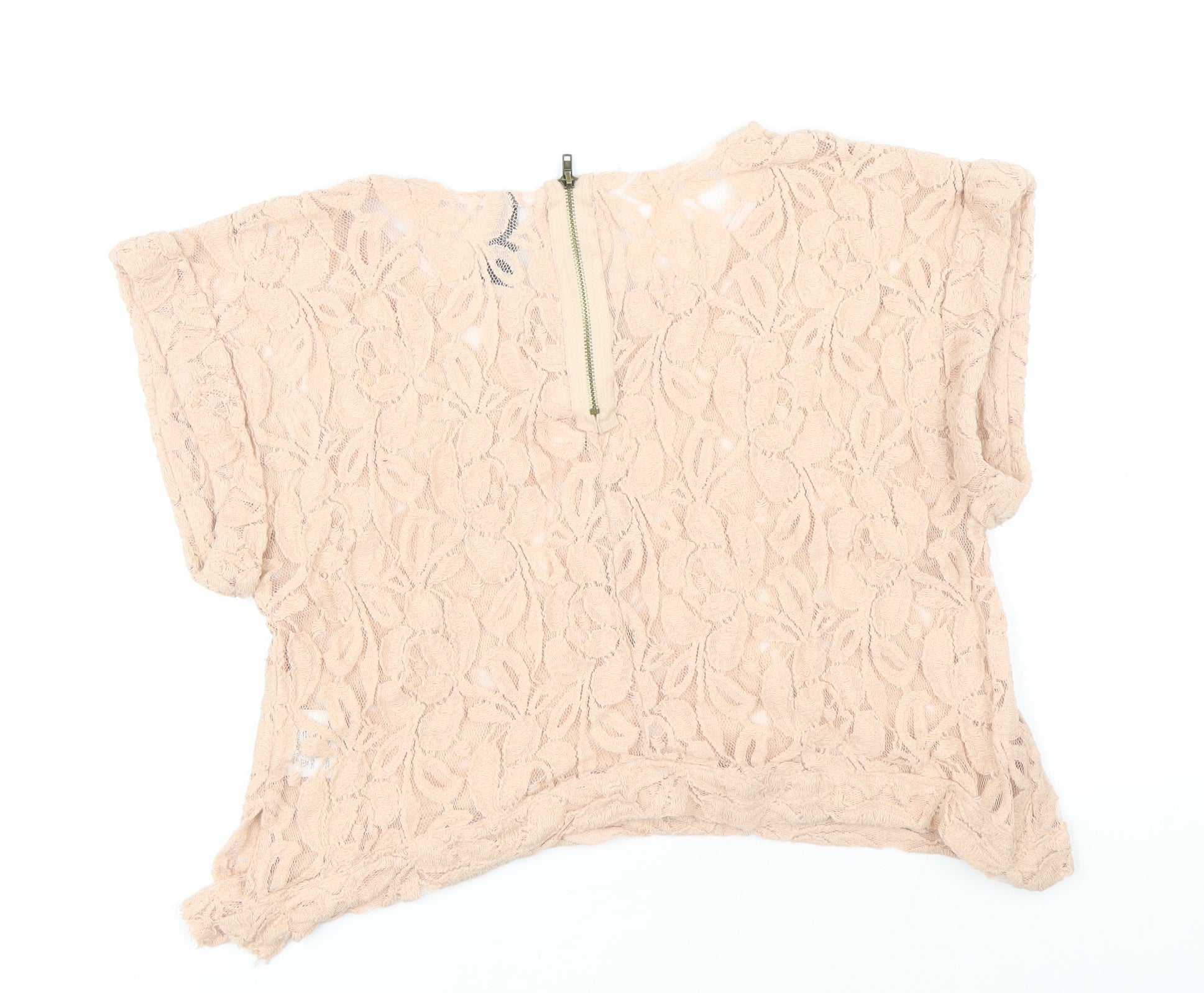 Influence Womens Pink Cotton Basic Blouse Size 12 Round Neck