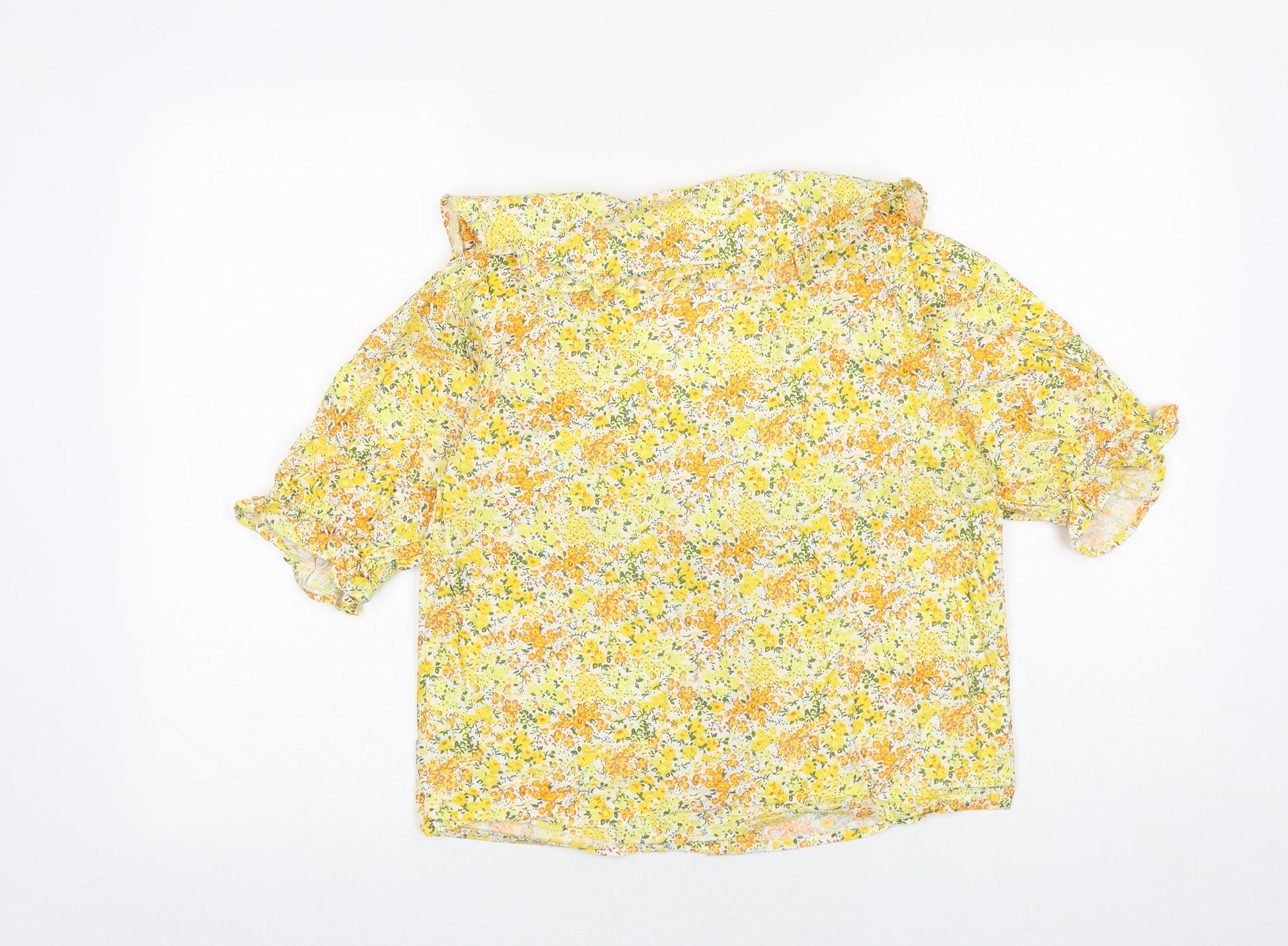 INFLUENCE Womens Yellow Floral 100% Cotton Basic Button-Up Size 10 Scoop Neck