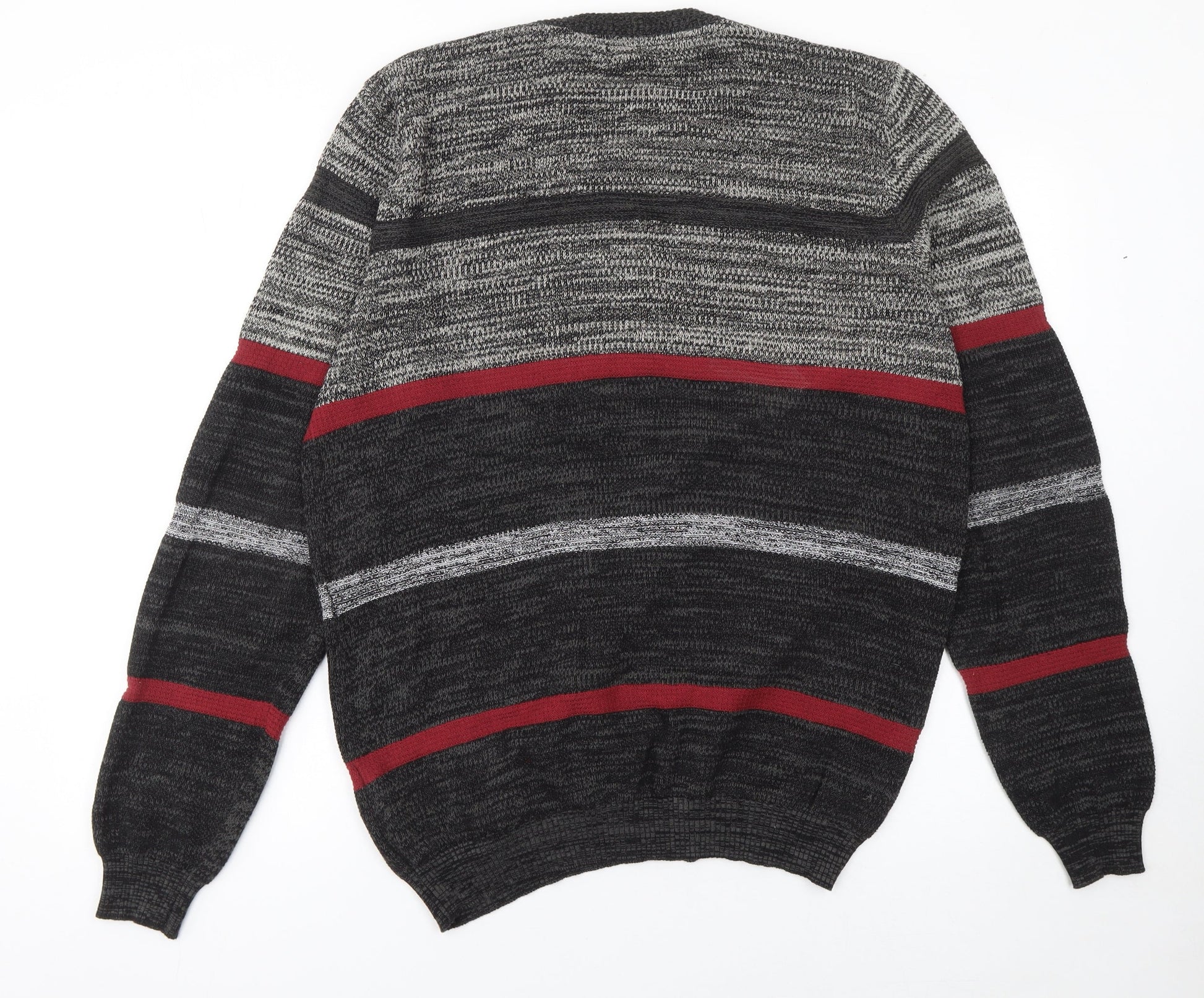 INSIDE Men's Grey Striped Cotton Crew Neck Jumper XL