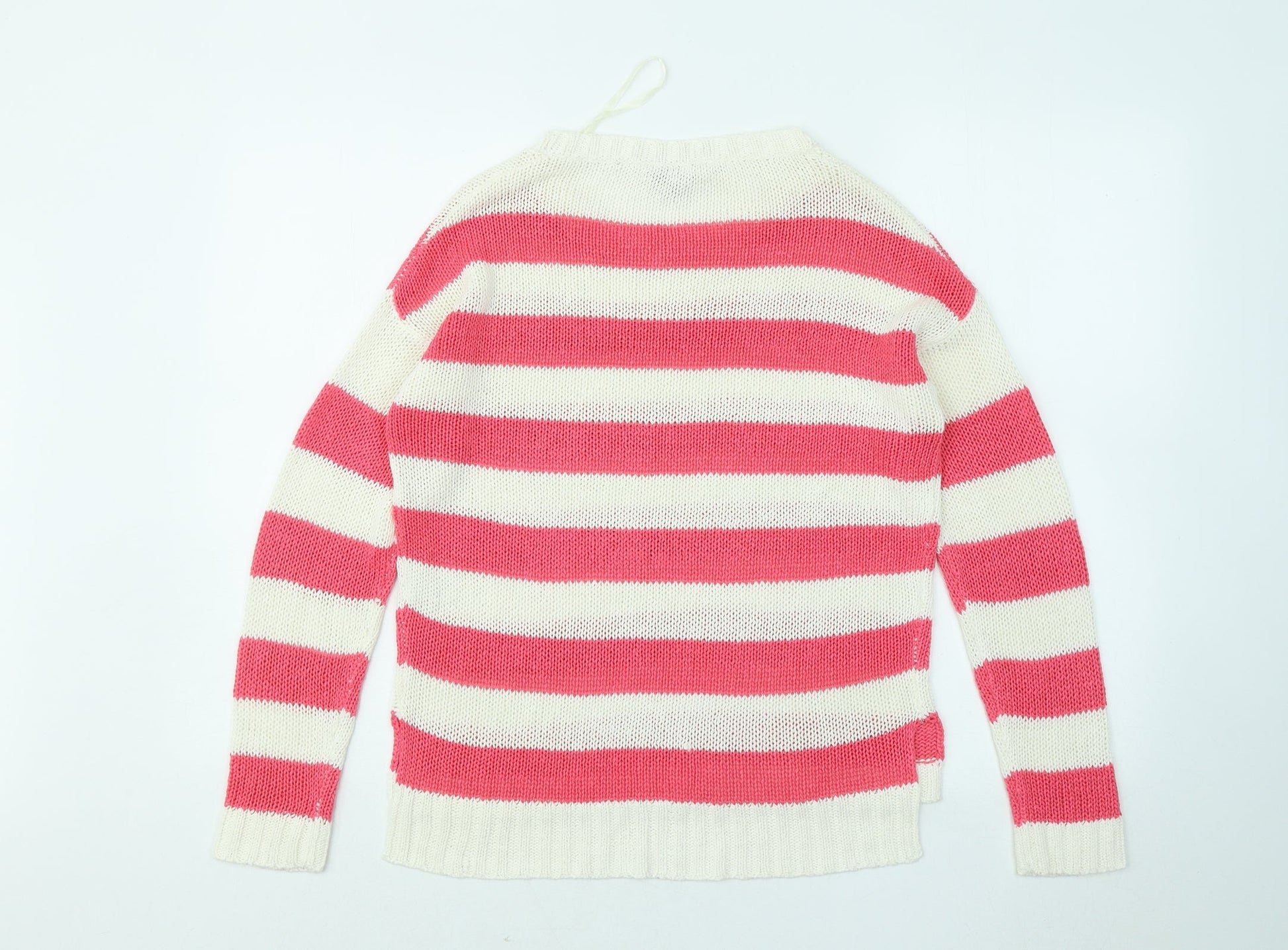 Inspire Collection Womens Pink Round Neck Striped Acrylic Pullover Jumper Size M
