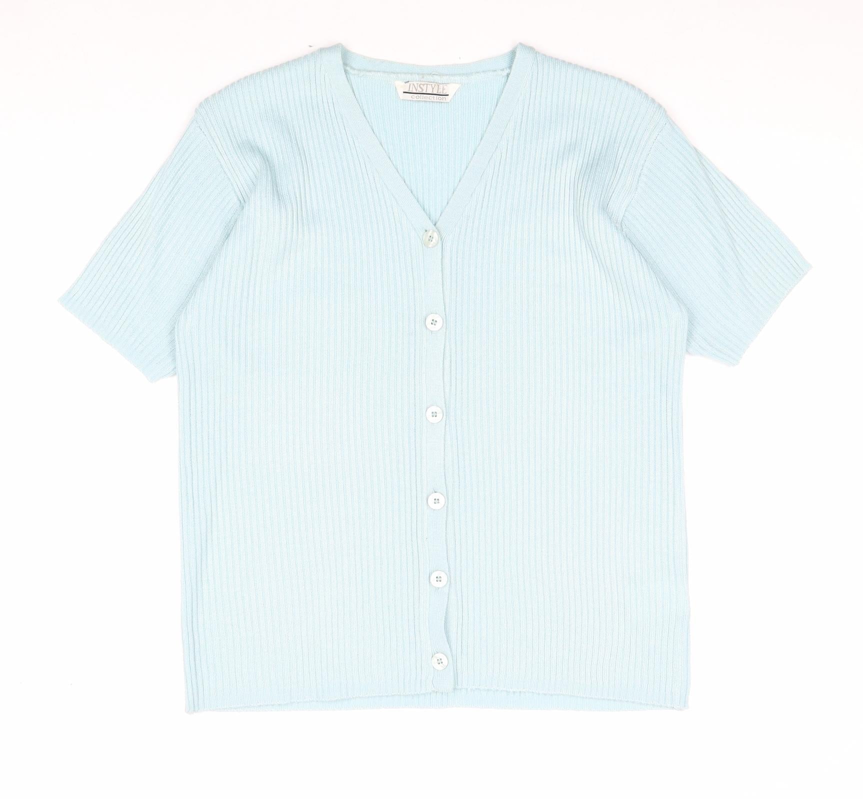 Instyle Womens Blue V-Neck Acrylic Cardigan Jumper Size M - Ribbed
