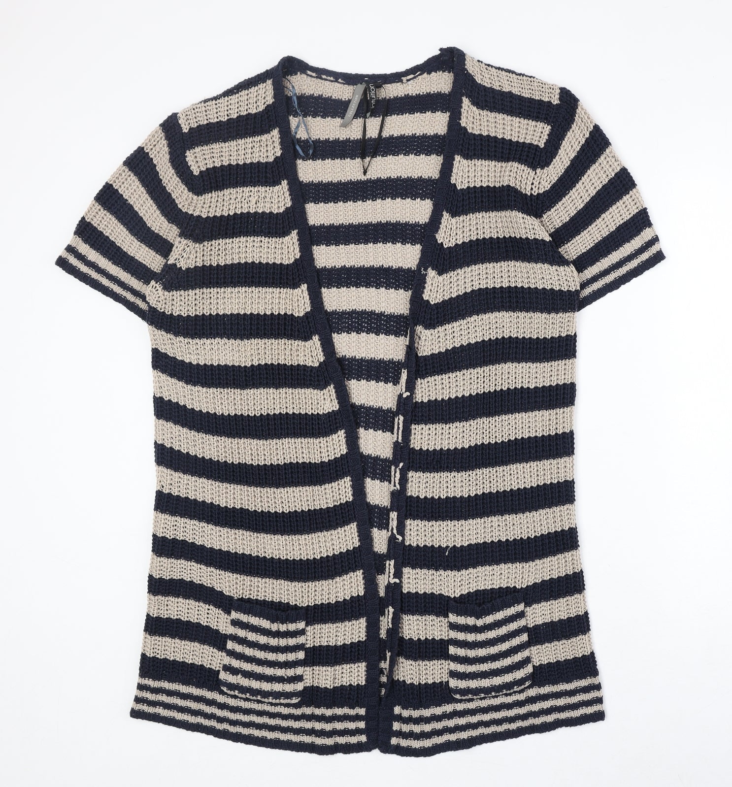 Intuition Womens Beige V-Neck Striped Acrylic Cardigan Jumper Size L
