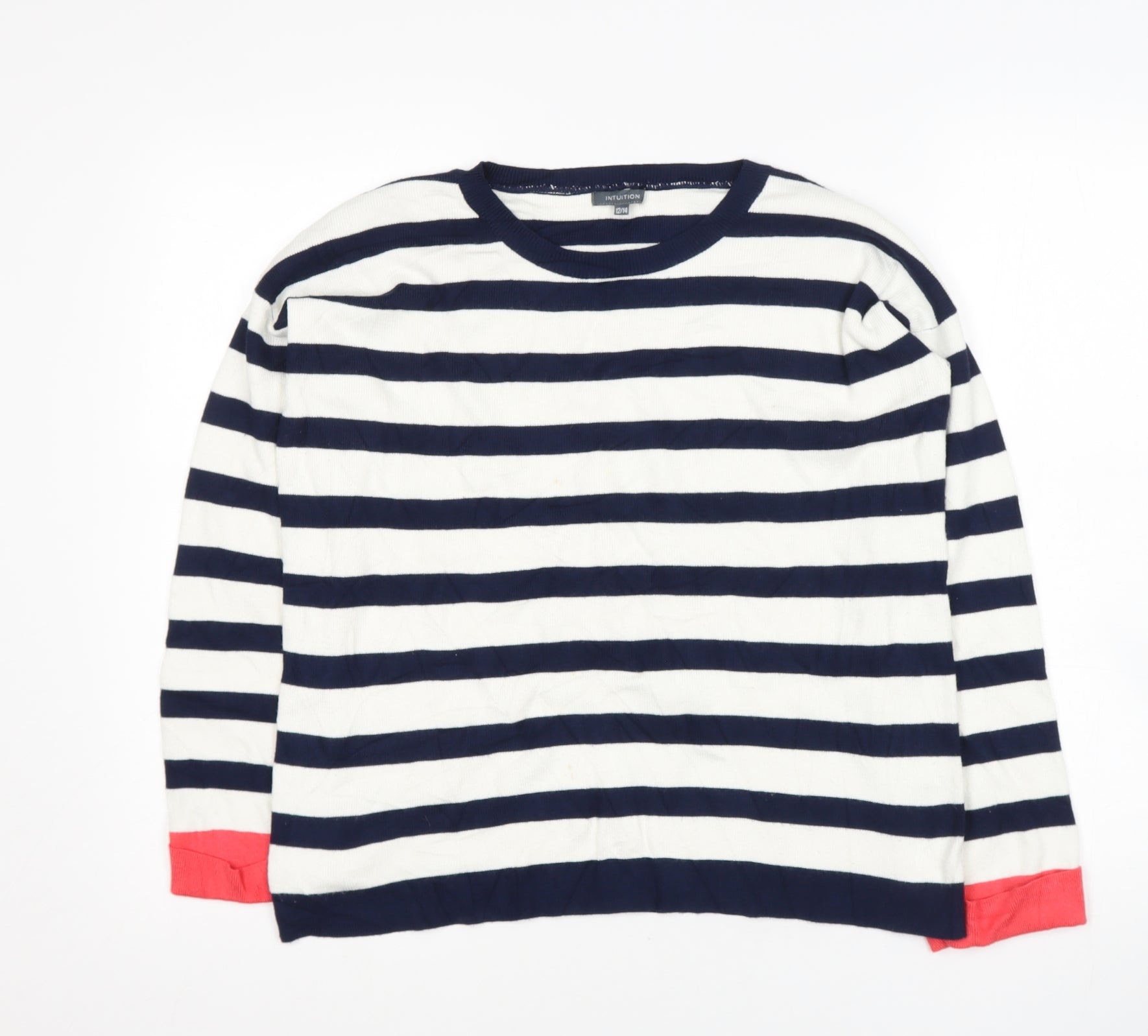 Intuition Womens Blue Round Neck Striped Viscose Pullover Jumper Size 12