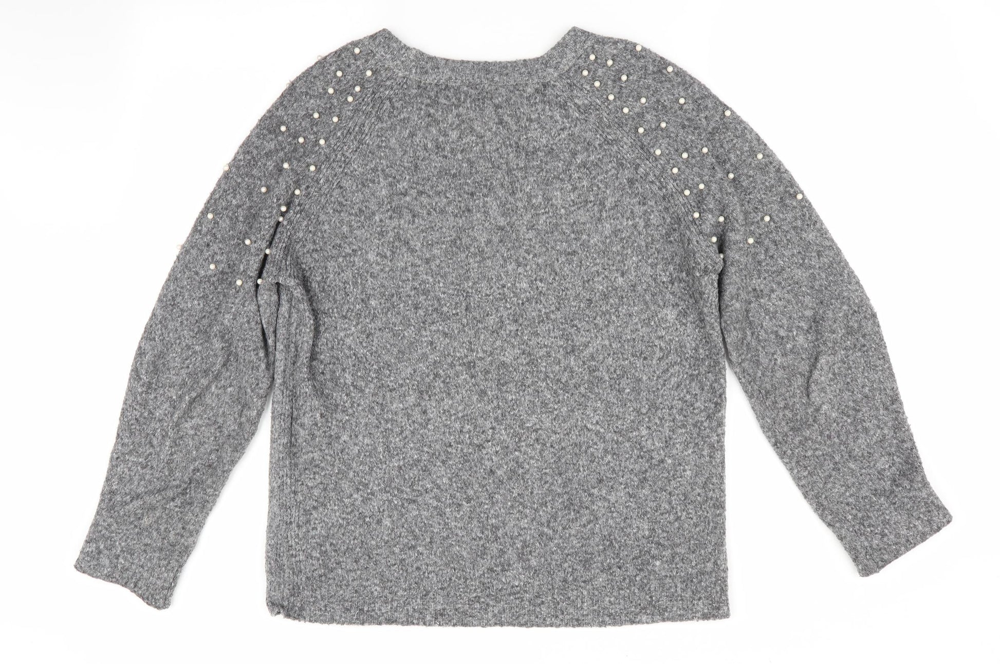 Intuition Womens Grey Pullover Jumper Size 8 - Beaded shoulders