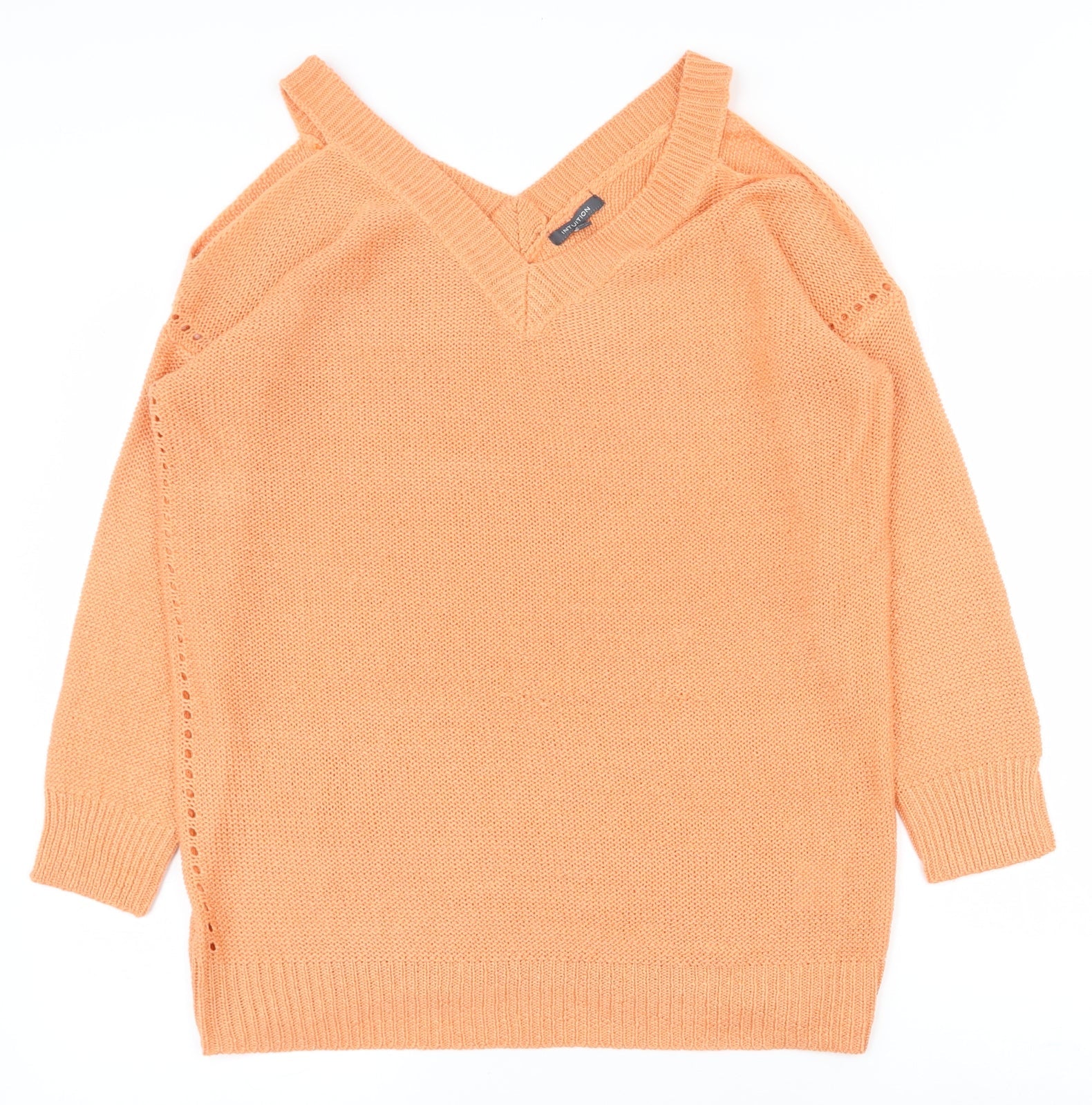 Intuition Womens Orange V-Neck Acrylic Pullover Jumper Size 12 - 12-14, Open shoulders