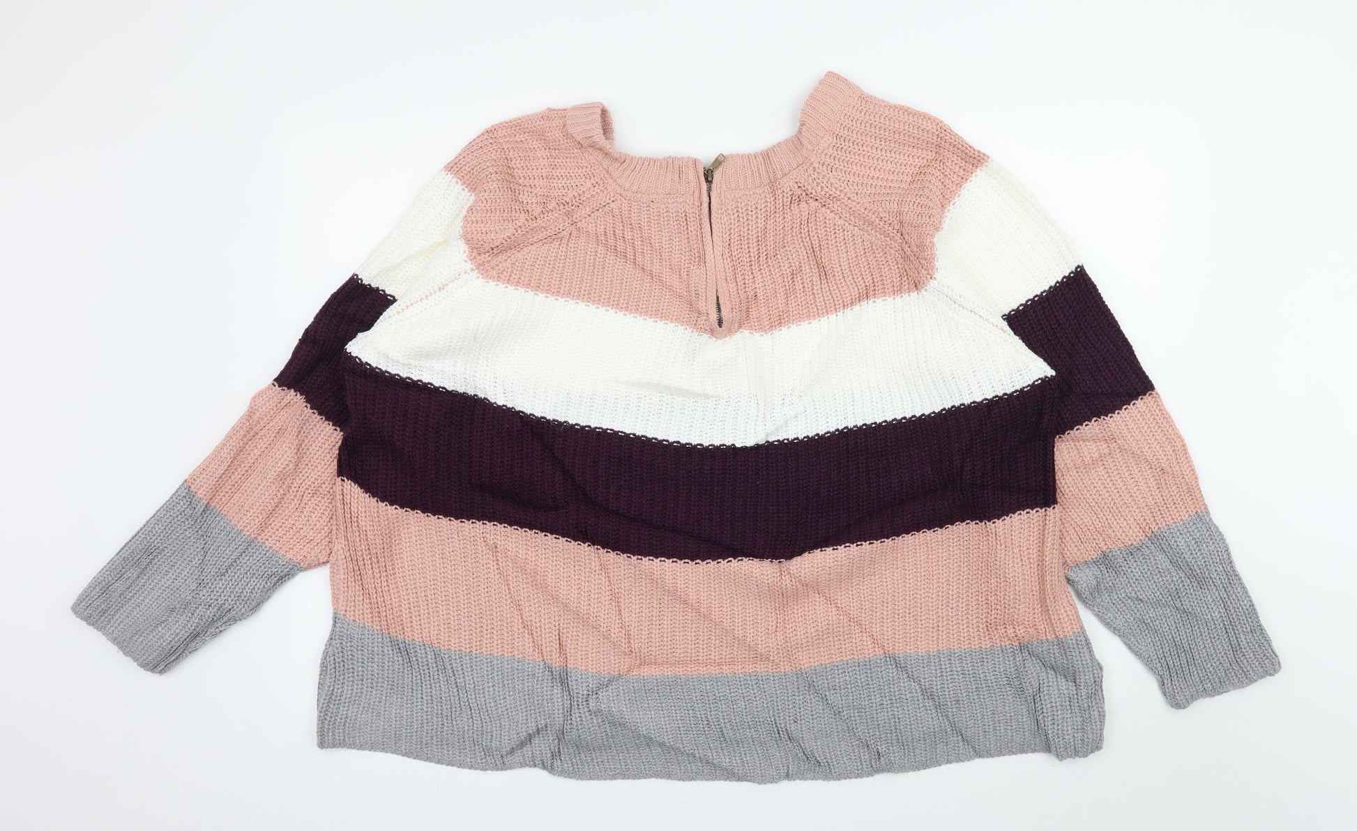 Intuition Womens Pink Striped Knit Pullover Jumper Size 18