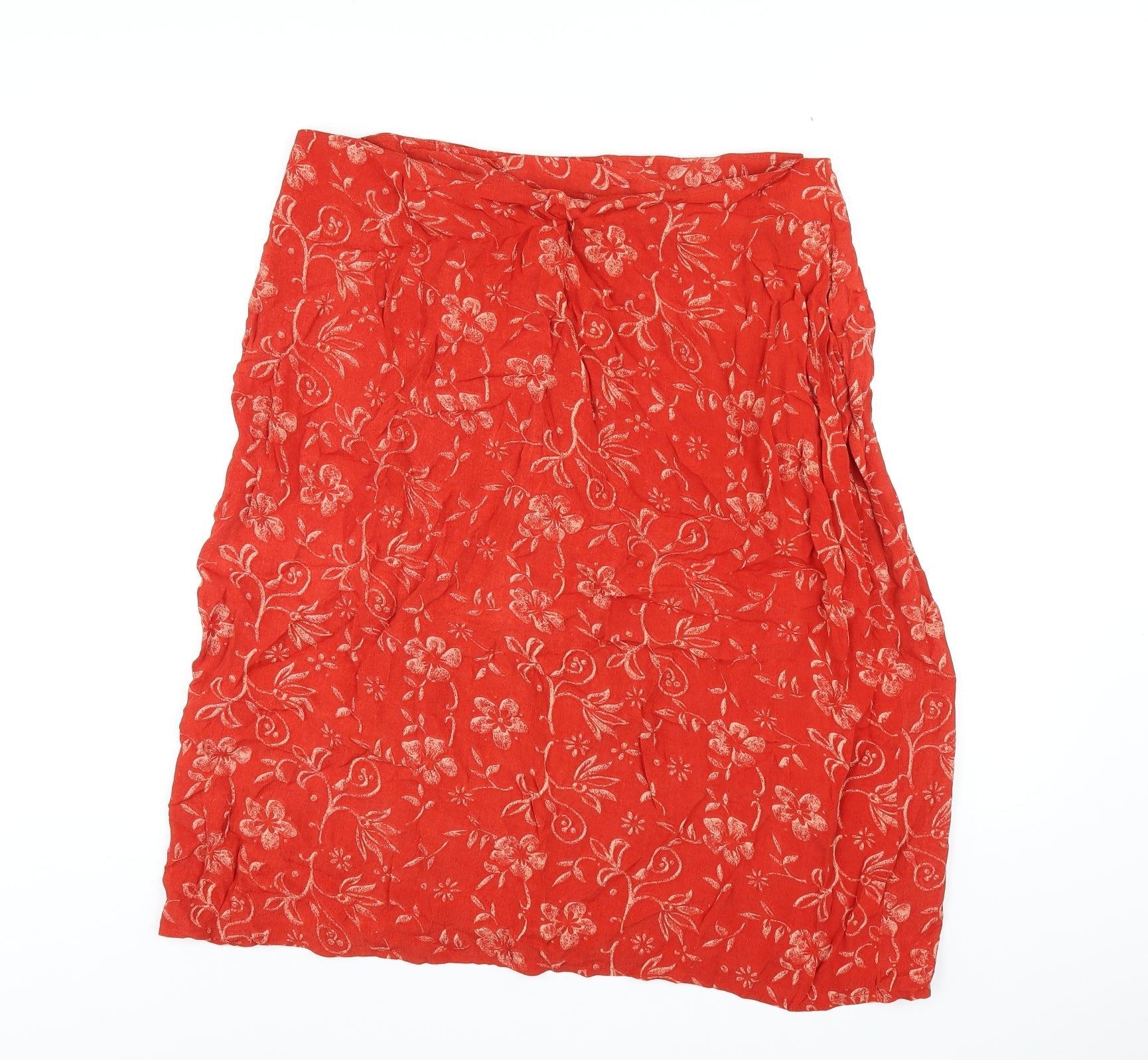 Isabelle Womens Orange Geometric Viscose A-Line Skirt Size 18 Button