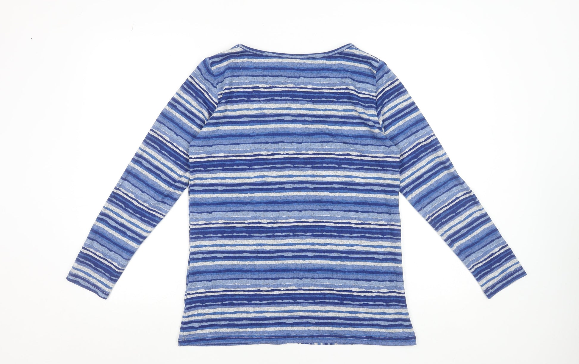 Isle Collection Women Blue Striped Long Sleeve Stretch Top Size S