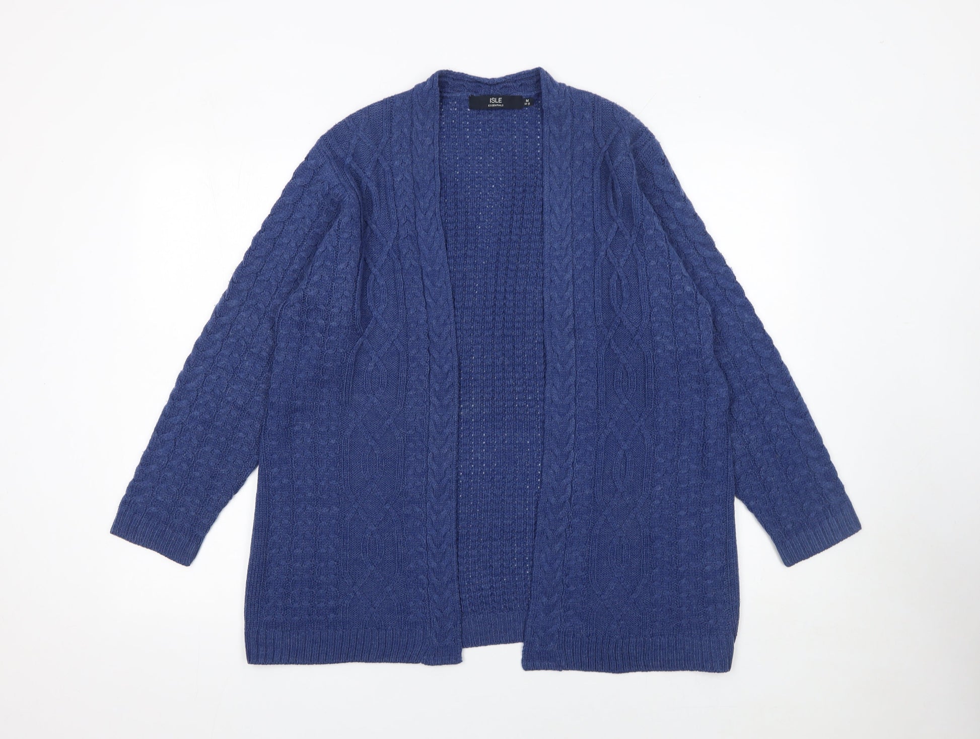 Isle Essentials Women Blue Cable-Knit Open Cardigan M 14-16