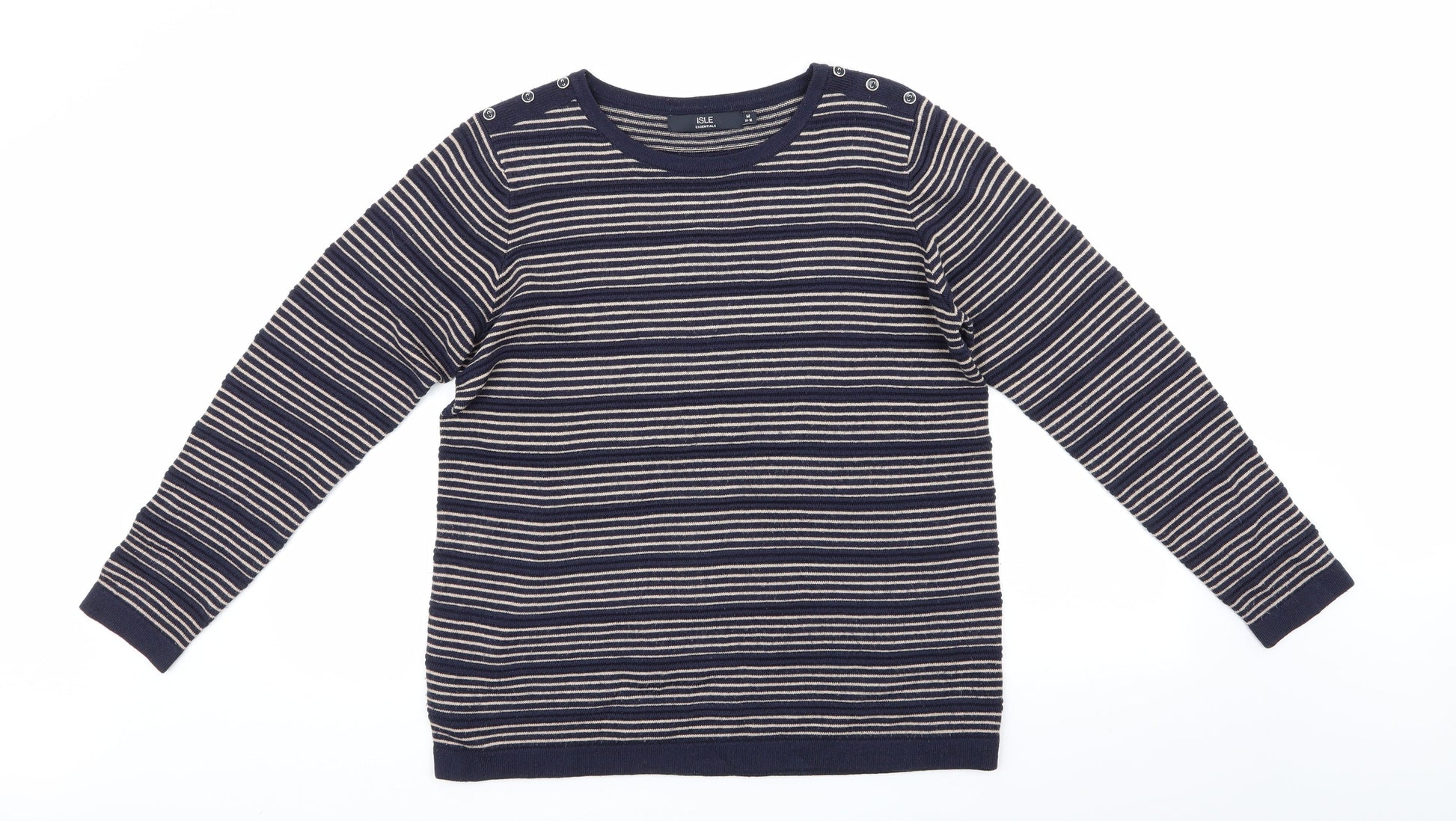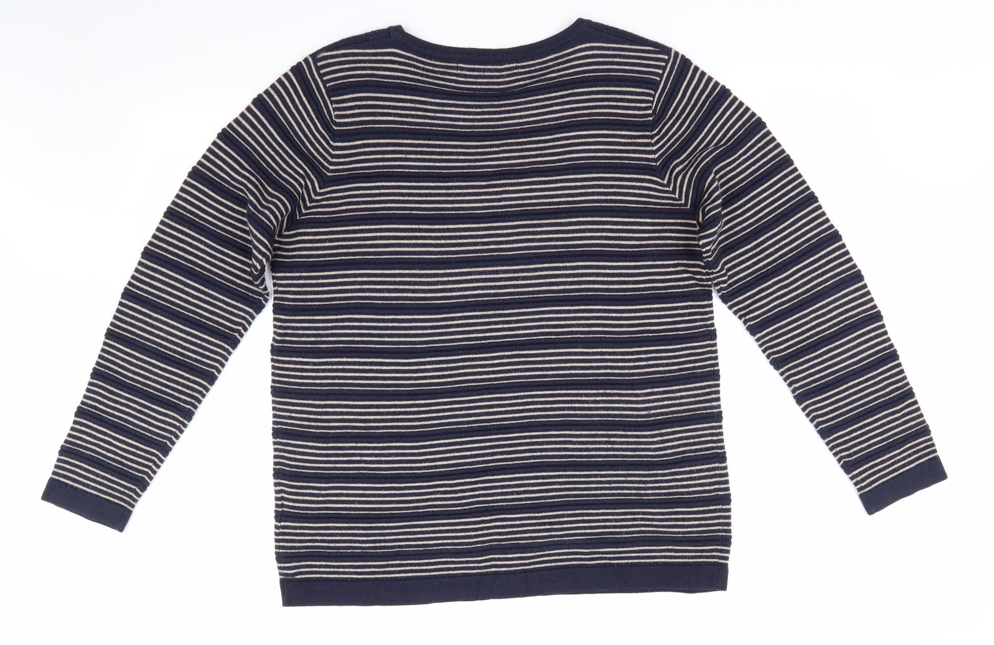 Isle Essentials Womens Blue Striped Pullover Jumper Size 14 - Blue & Beige Stripes