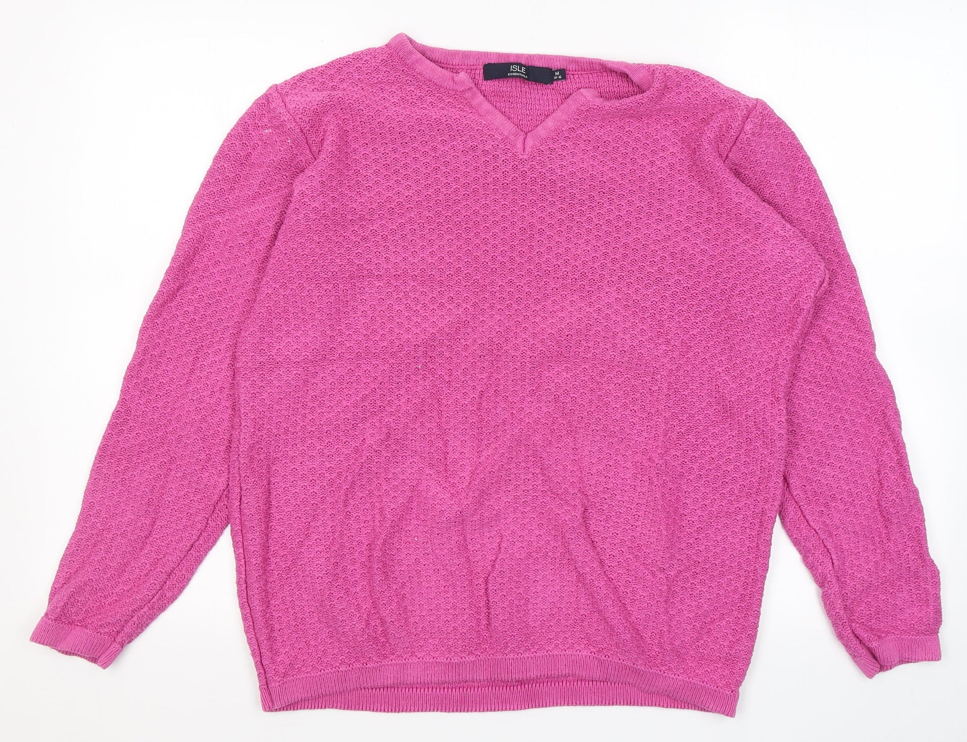 ISLE Essentials Womens Pink V-Neck Cotton Pullover Jumper Size M